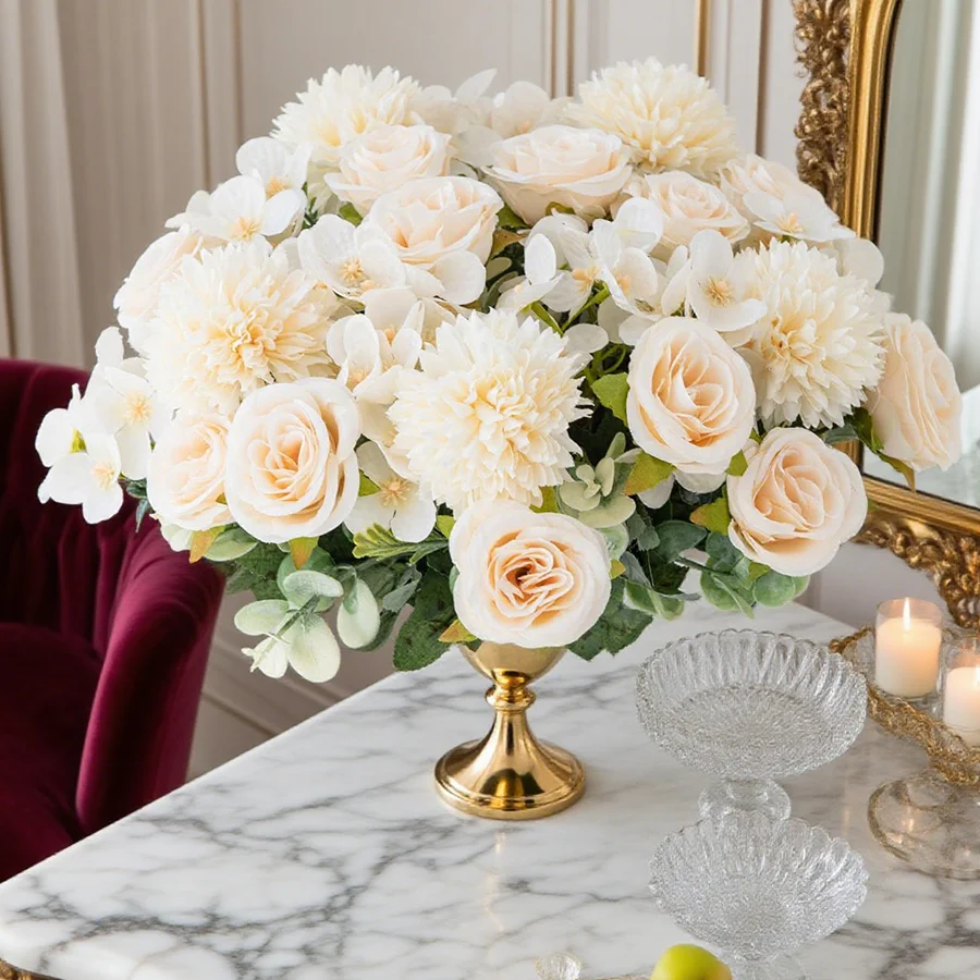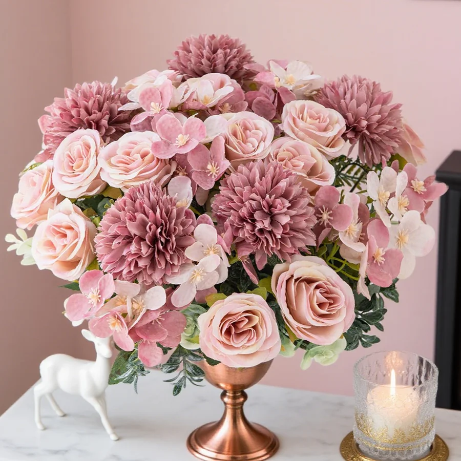 1/4pcs Artificial Flower Rose Chrysanthemum Silk Bridal Bouquet Wedding Garden Arch Festival Home Room Vase Table Diy Gift Decor
