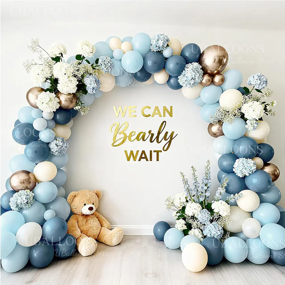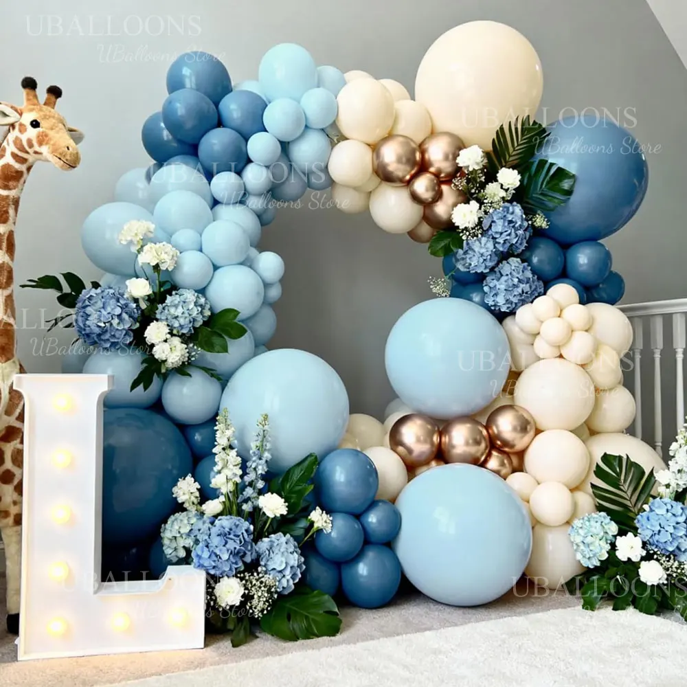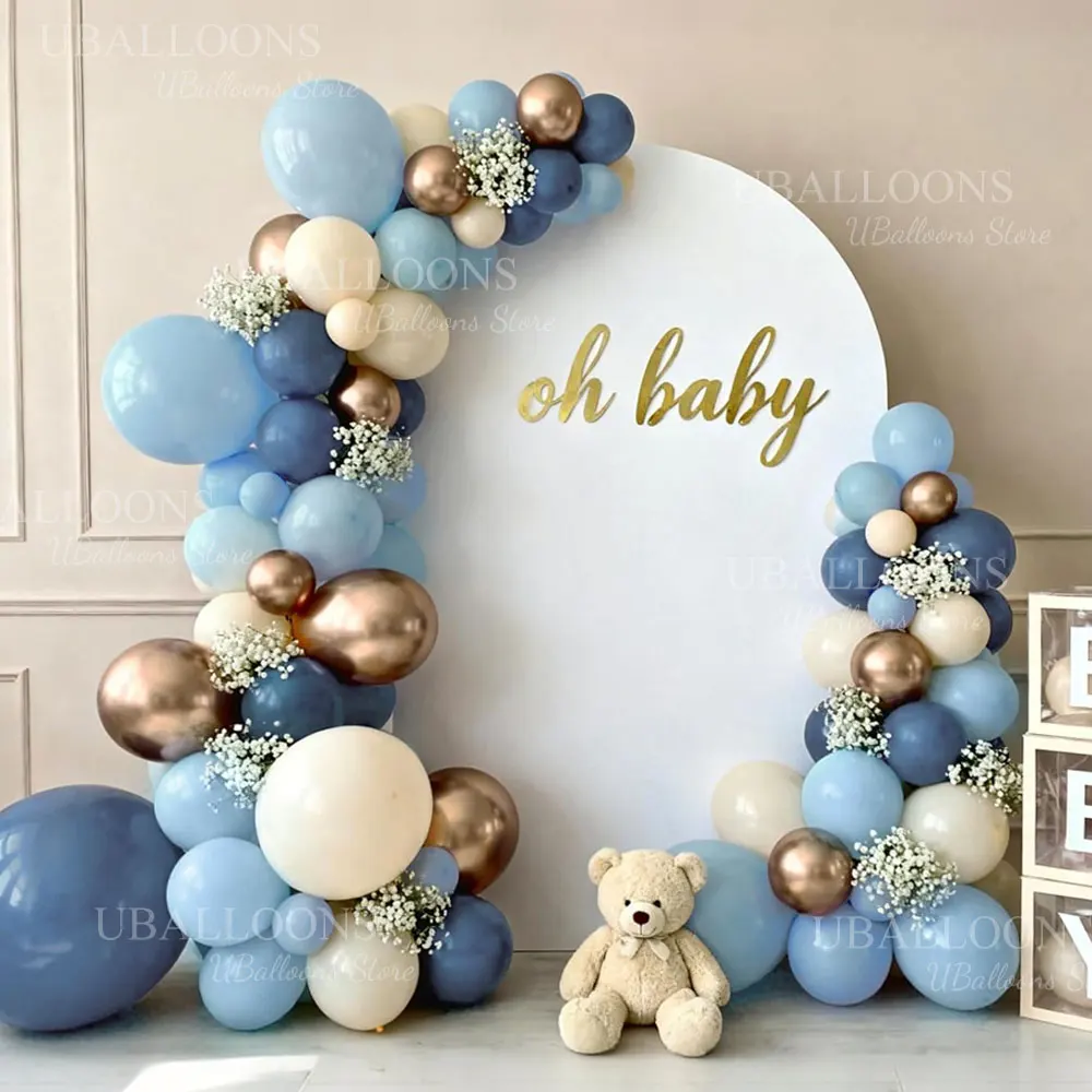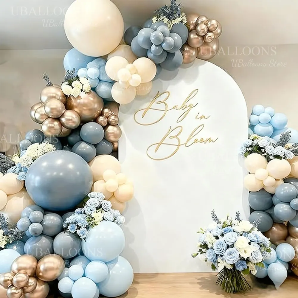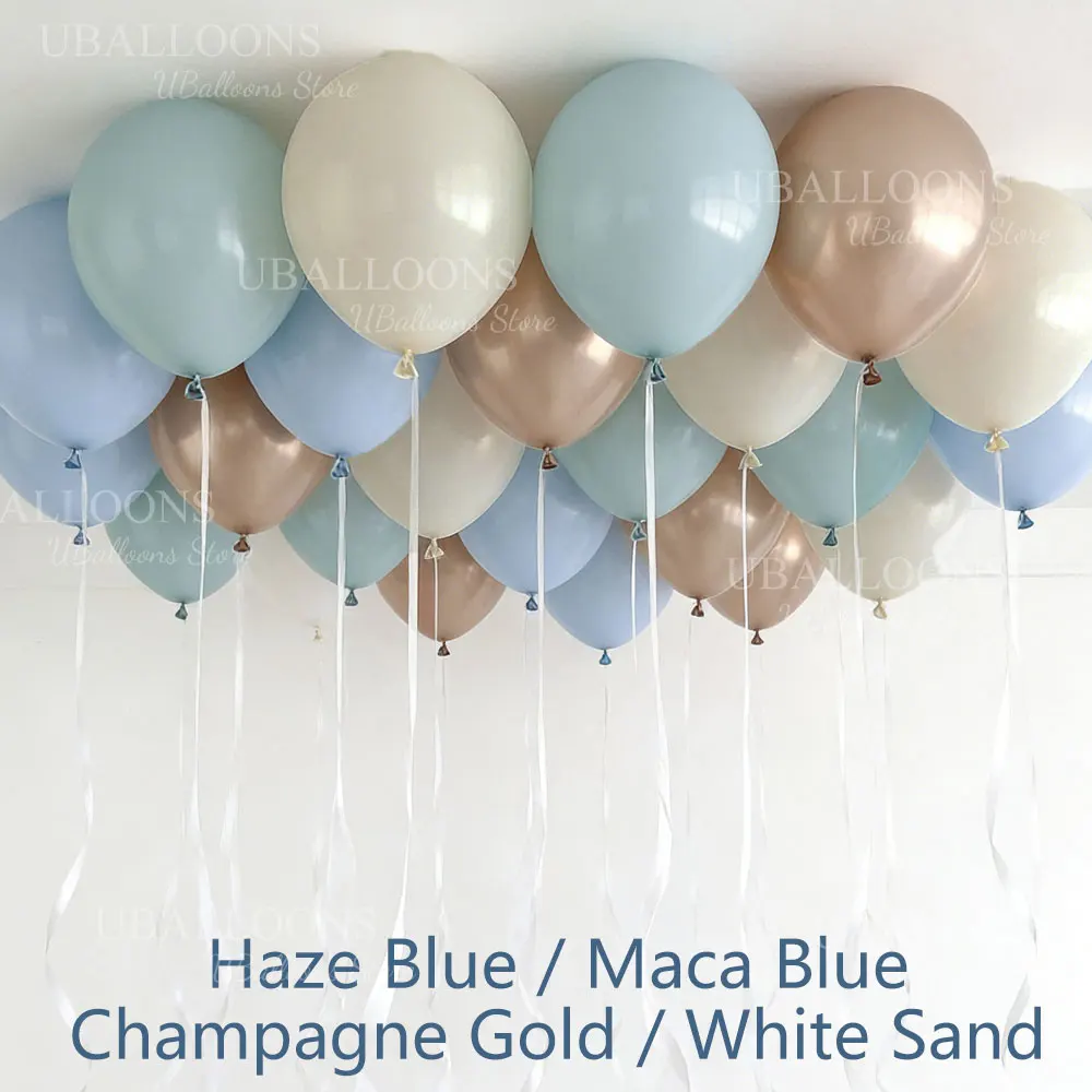 62pcs 12Inch Haze Blue Balloons Set Boho White Sand Dusty Twilight Slate Blue Balloon for Birthday Boy Baby Shower Wedding Decor