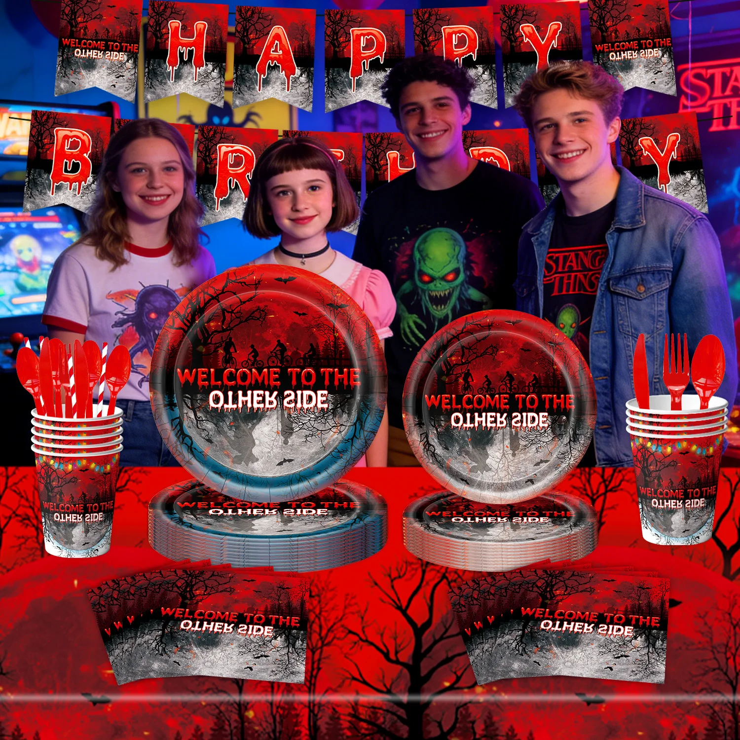 Horror Movie Stranger Theme Birthday Party Decoration Tableware Tablecloth Cup Plate Napkin Baby Shower Party Favors Supplies