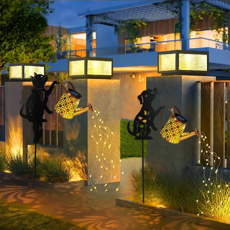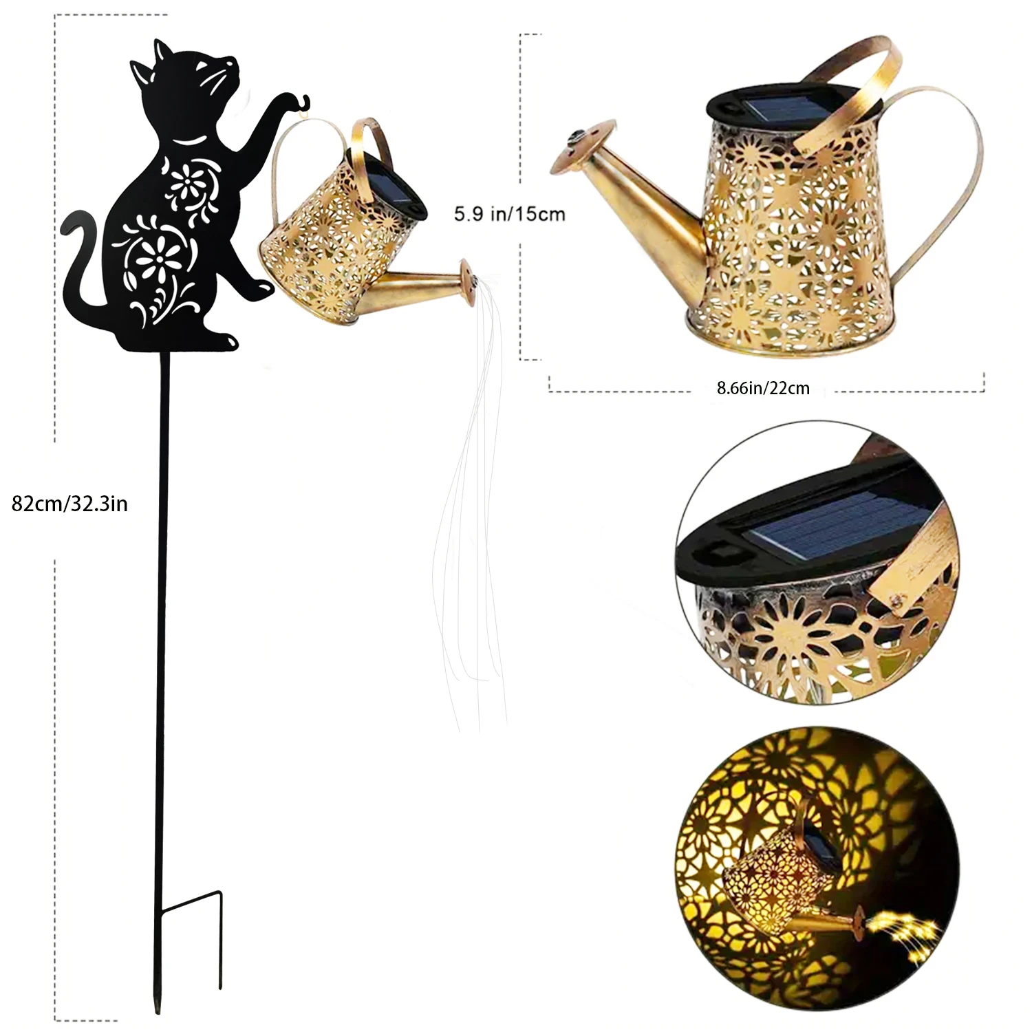 1 Outdoor Solar Cat/Dog Silhouette Watering Can Light - Hanging Solar Garden Decor for Lawn, Backyard, Pathway, and Patio