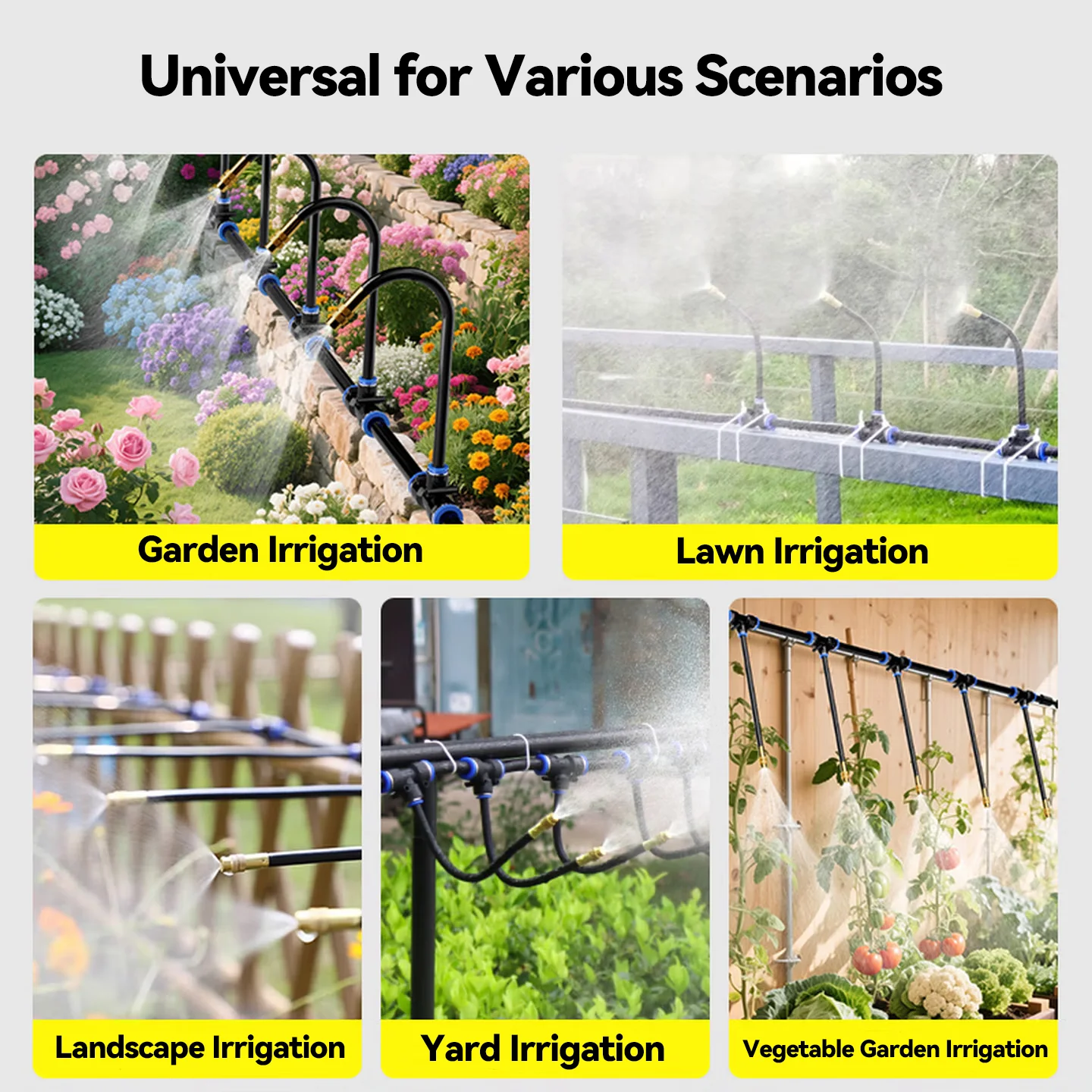 Universal Mist Nozzle Irrigation System 16.4/32.81/49.21/65.62ft Automatic Watering Kit for Garden Watering Roof Cooling Sprinkl