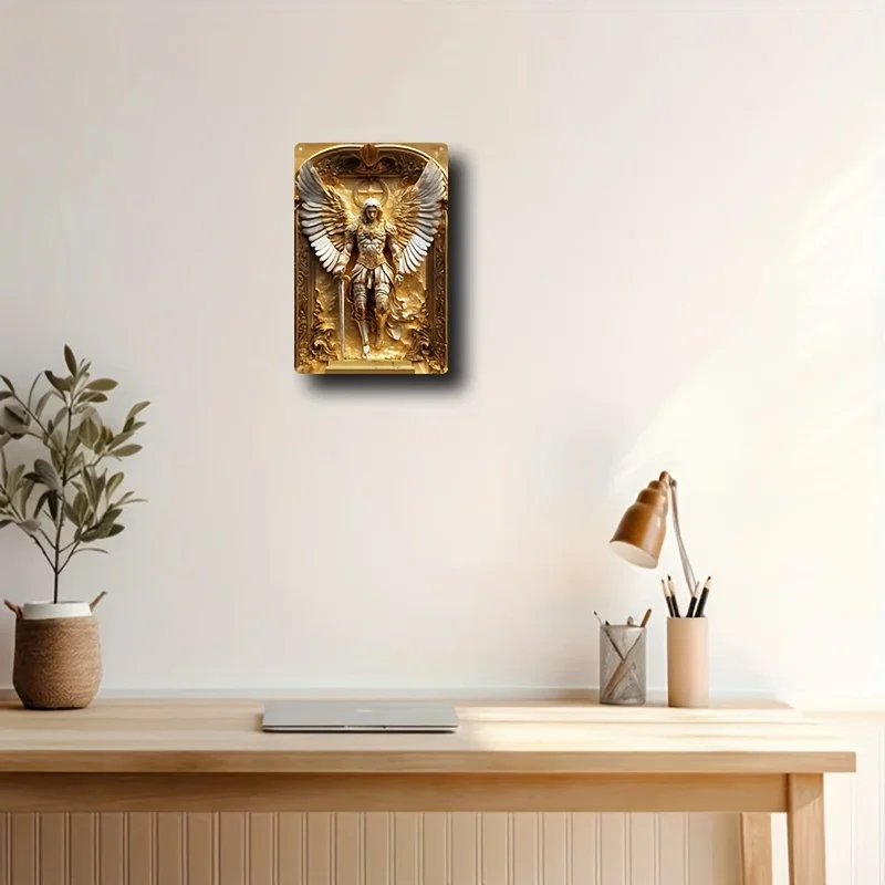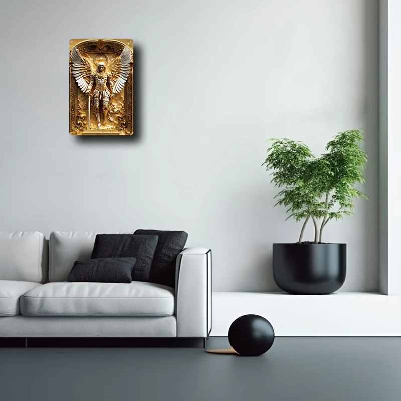 "Golden Archangel Michael Square Aluminum Wall Art - Versatile Decor for Home, Bar, Kitchen, and Farmhouse - Durable Metal Sign