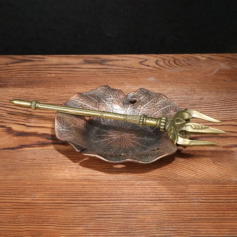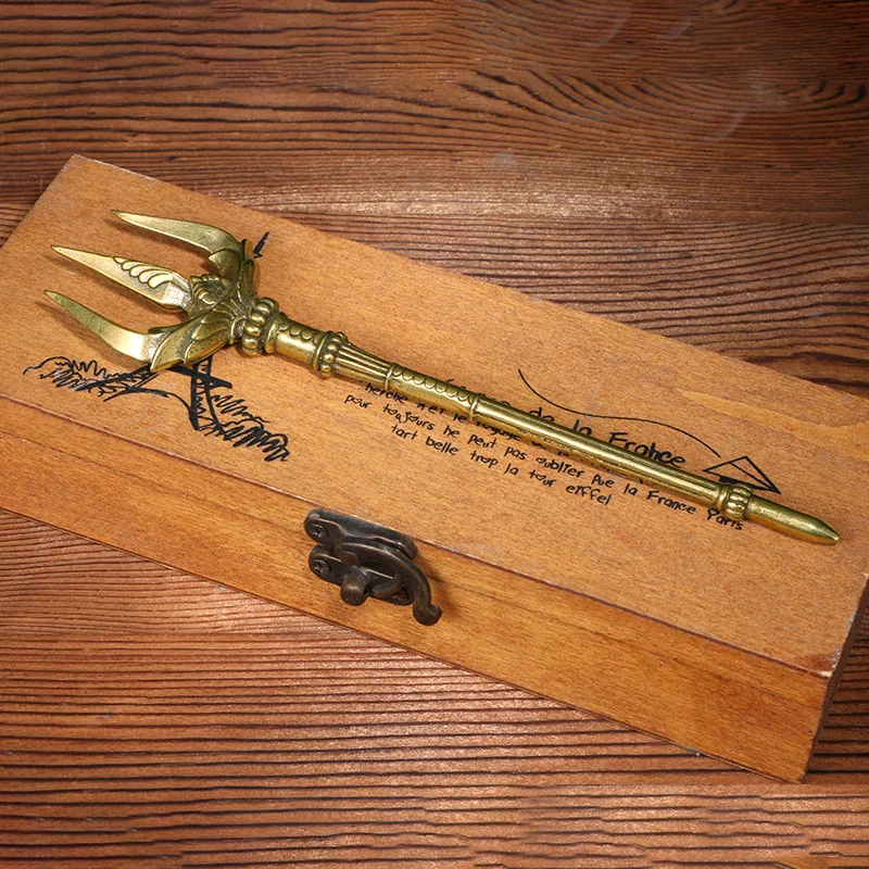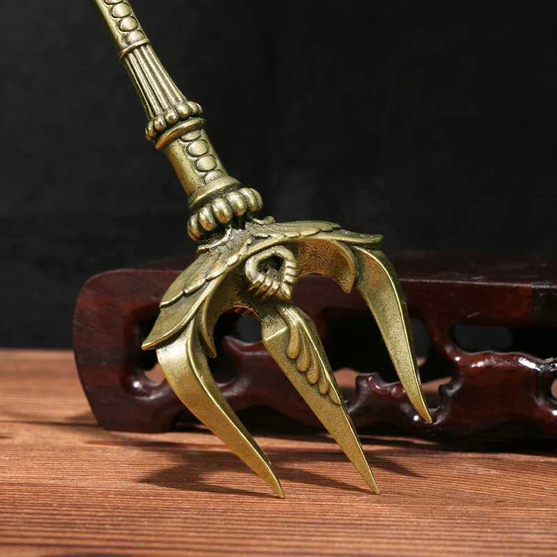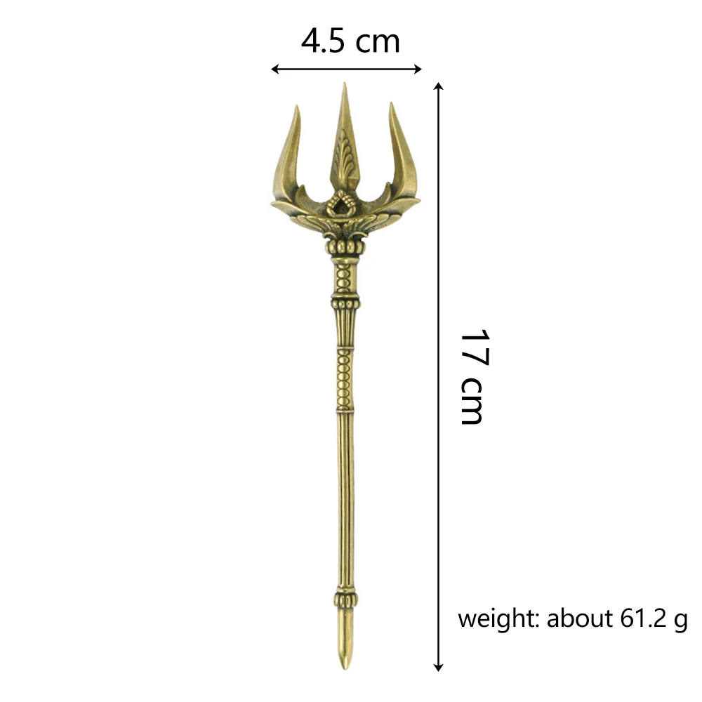 Greek Mythology Poseidon Trident Brass Figurines Desk Decoration with Base Can Stand Sea God Ornaments Souvenir