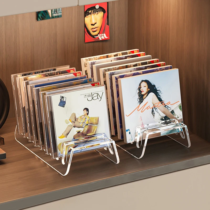 6Grid Clear Acrylic CD Display Shelf Multifunctional CD Display Organizer for Vinyl Records Cassette Tapes Desktop Storage Shelf