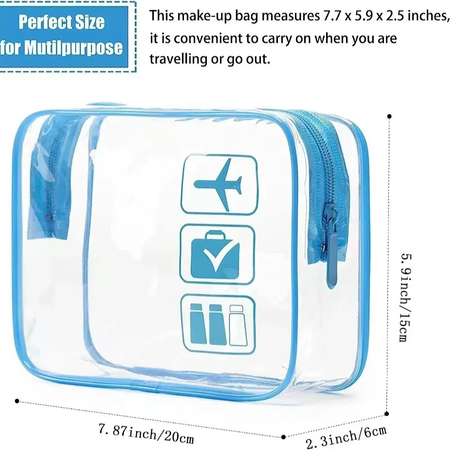 Clear Makeup Bag with Zippers Transparent Organizer Cosmetic Bags for Vacation Business Trip Airport Bathroom