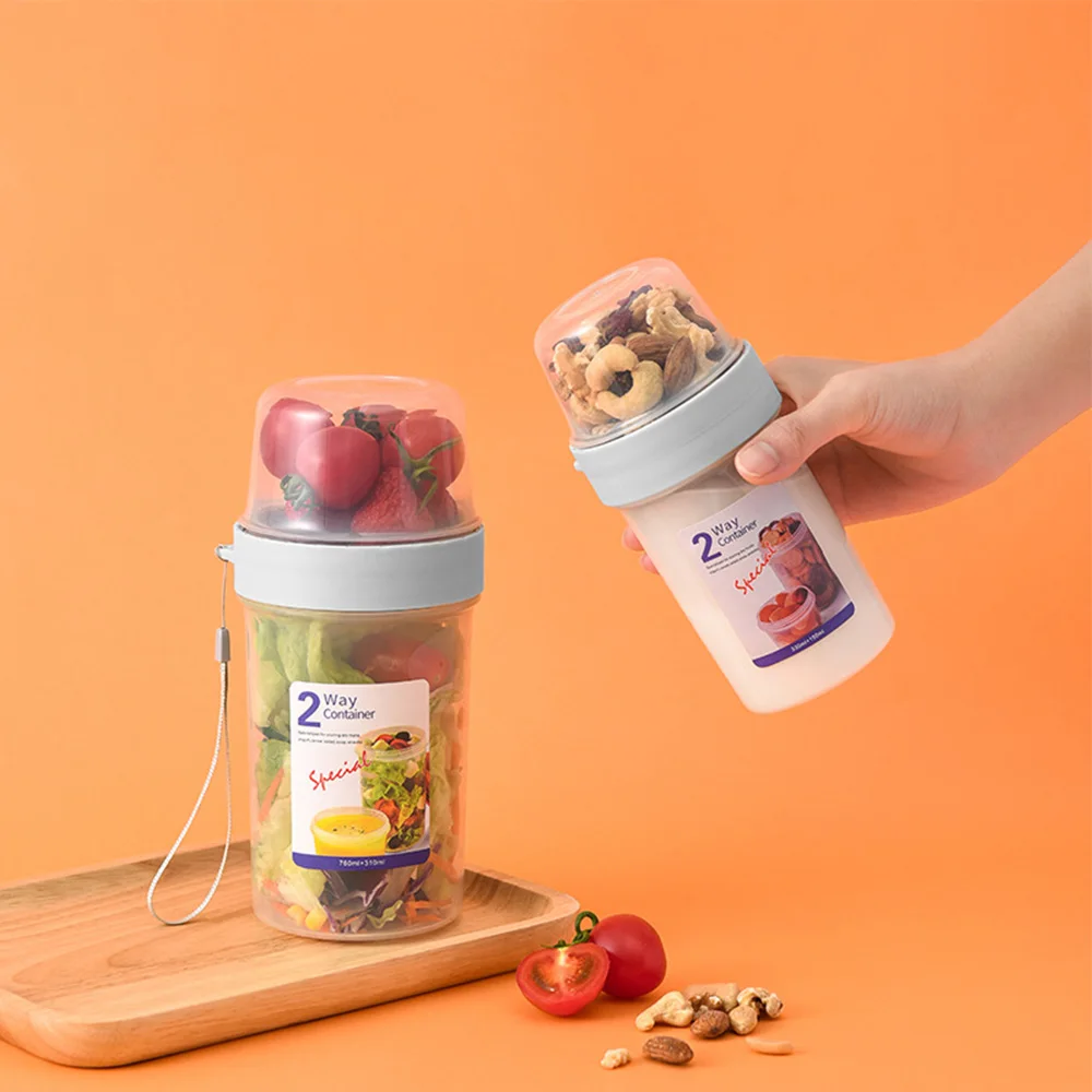 2Layer Yogurt Salad Sealed Box Portable Lunch Bowl For Cereals Snack Sealed Jars Fruit BentoTuppers Food Nut Yogurt Bowl Cup 1PC