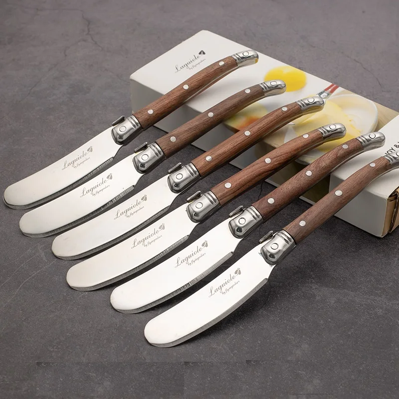 6.25" Cheese Knives Rosewood Handle Butter Knife Cheese Spreader Jam Spatula Sandwich Slicer Stainless Steel Child Kid's Cutlery