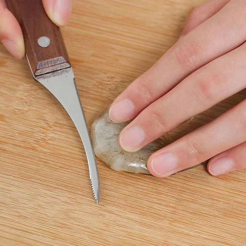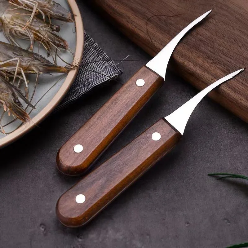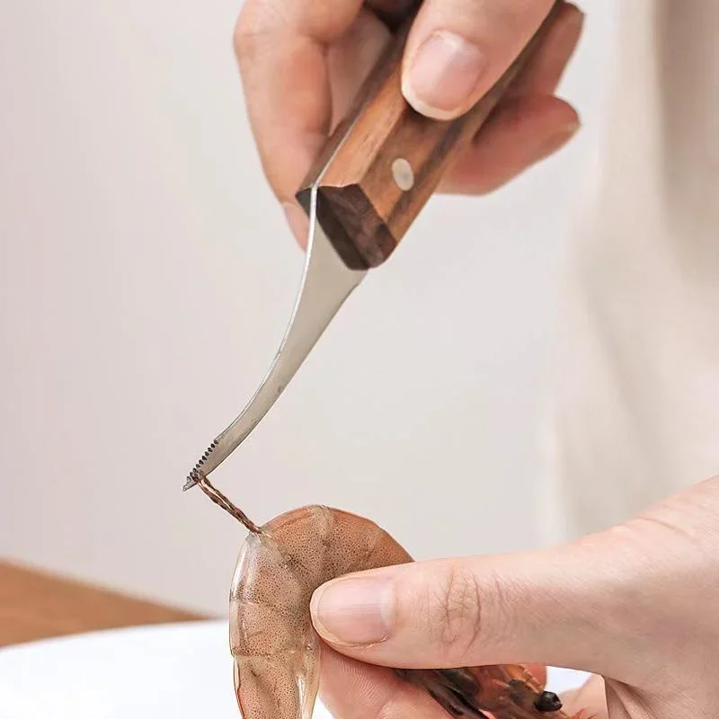 Kitchen Shrimp Deveiner Knife,Serrated Stainless Steel Blade and Wooden Handle,Shrimp Deveining Tool, Essential Tool for Kitchen