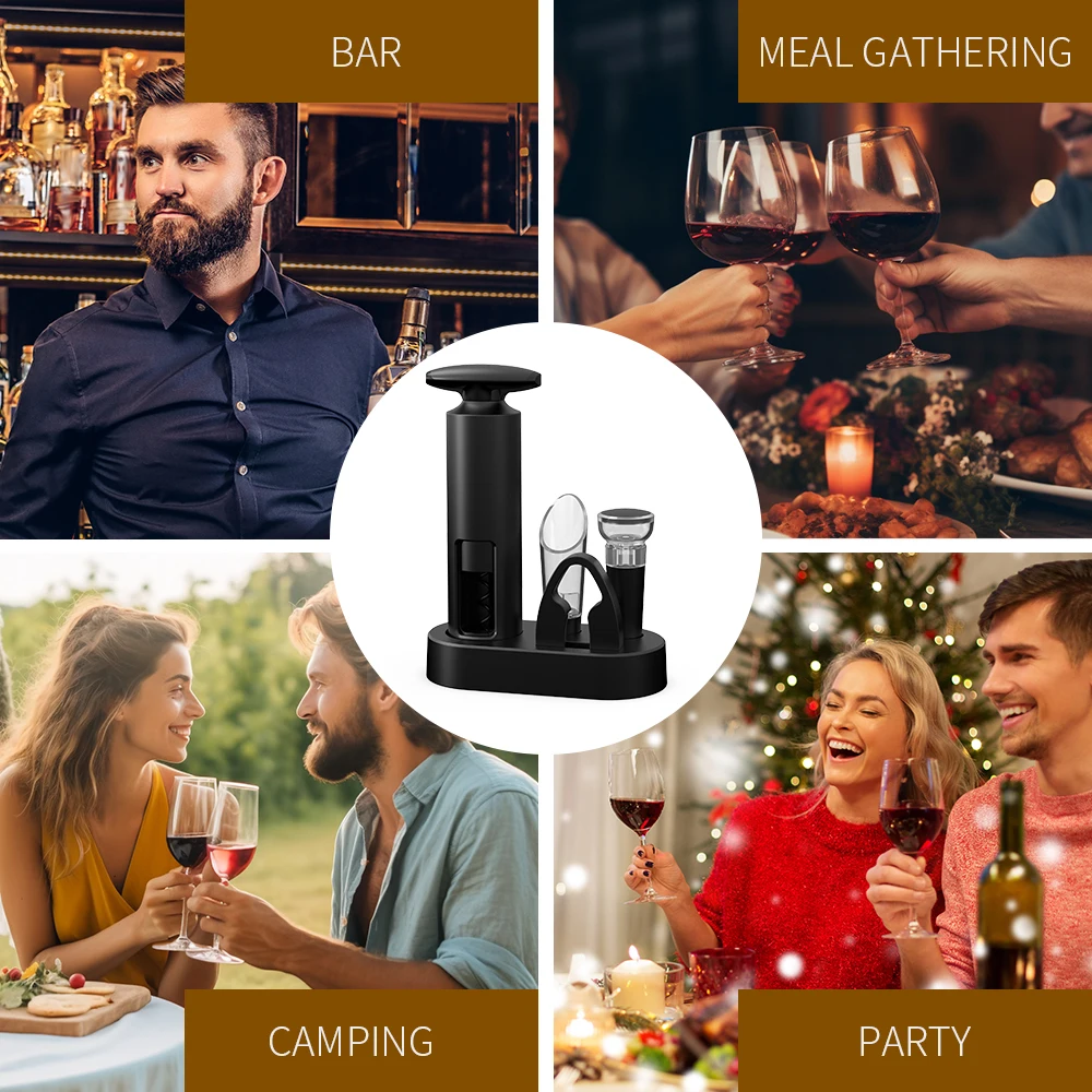 Wine Opener Professional Waiters Corkscrew Wine Bottle Opener with Foil Cutter, Wine Pourer, Wine Stopper & Base For Wine Lover