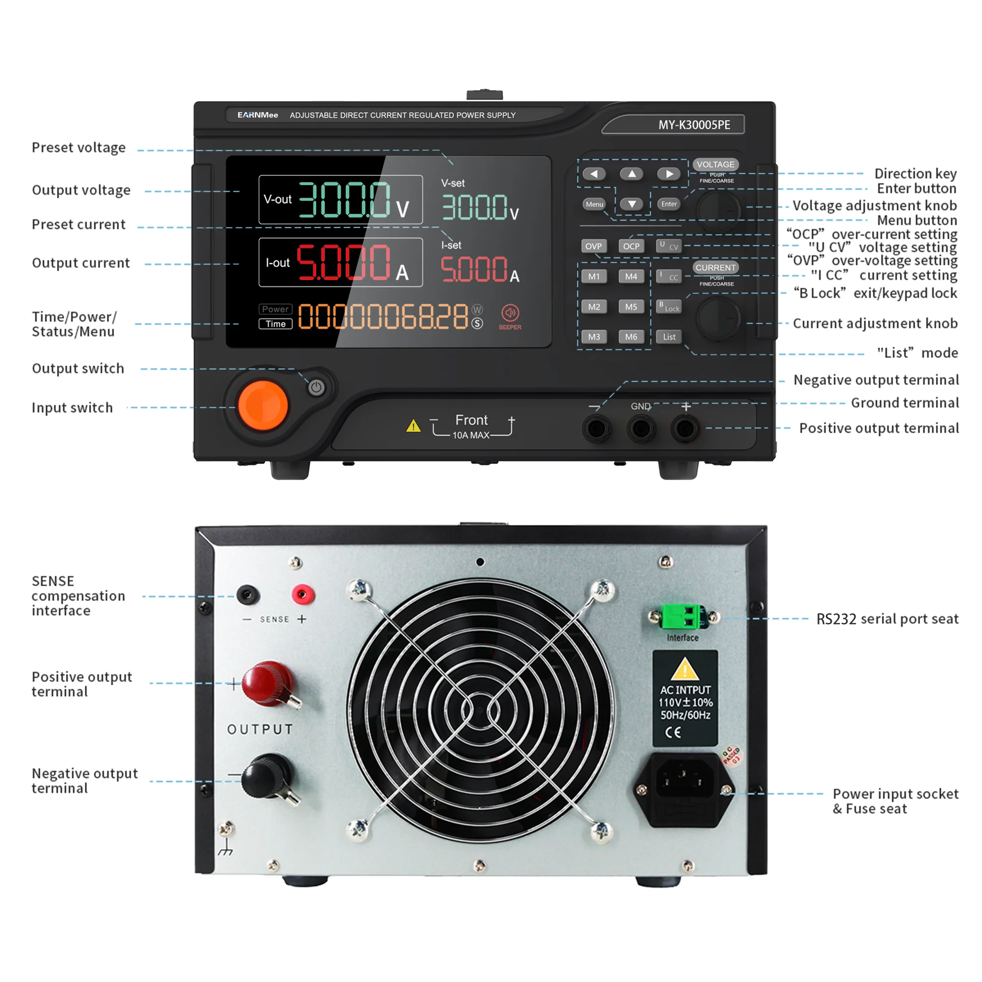 Laboratory Adjustable 300V 5A voltage stabilizer High Voltage Programmable DC Power Supply