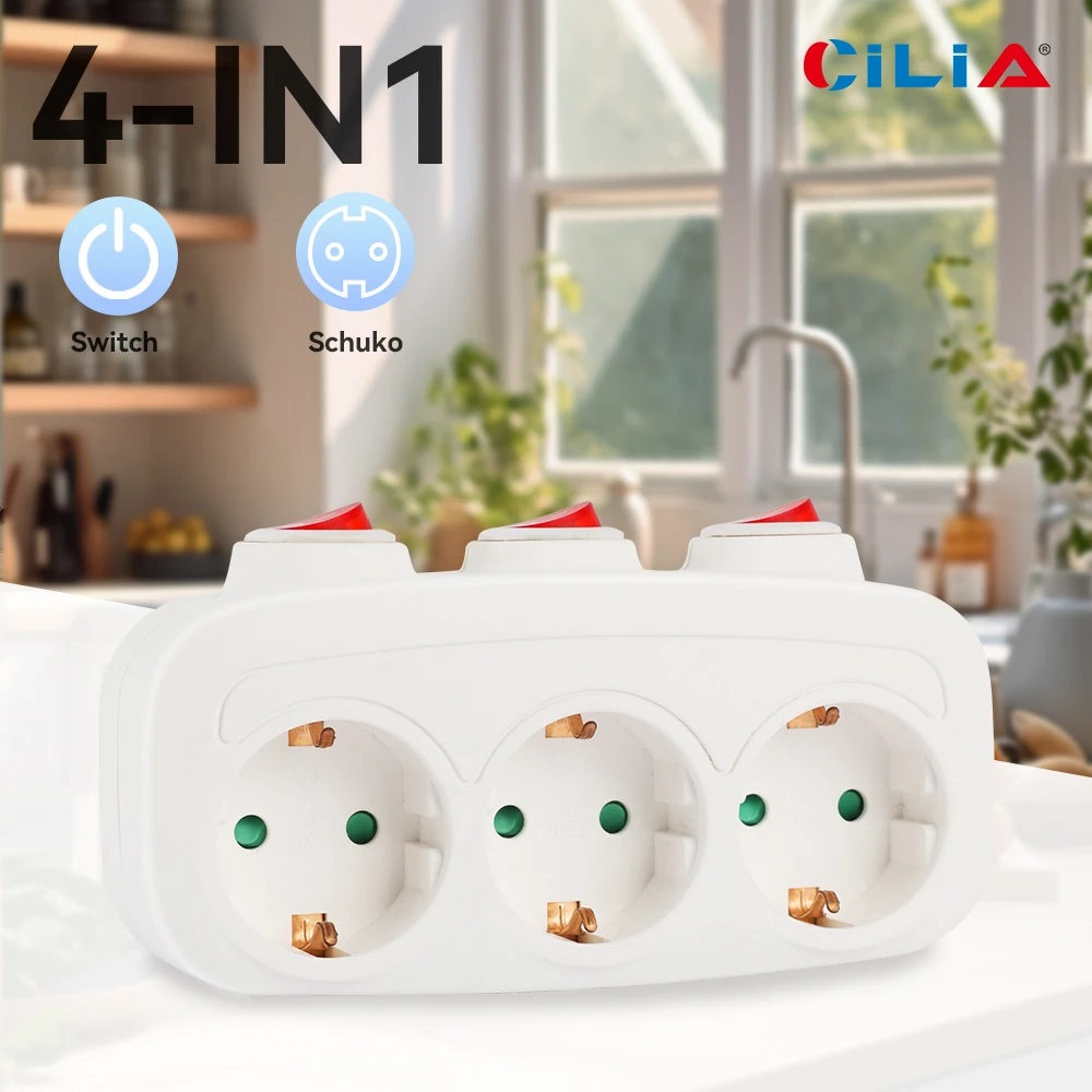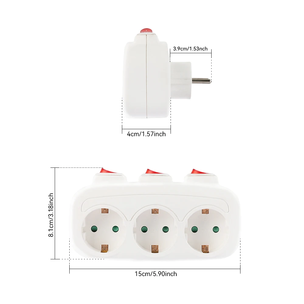 1/2PCS EU Plug Power Strip - 3-in-1 Wall Outlet with 3 Switches, 3 AC Sockets, Multi Plug for Home Use