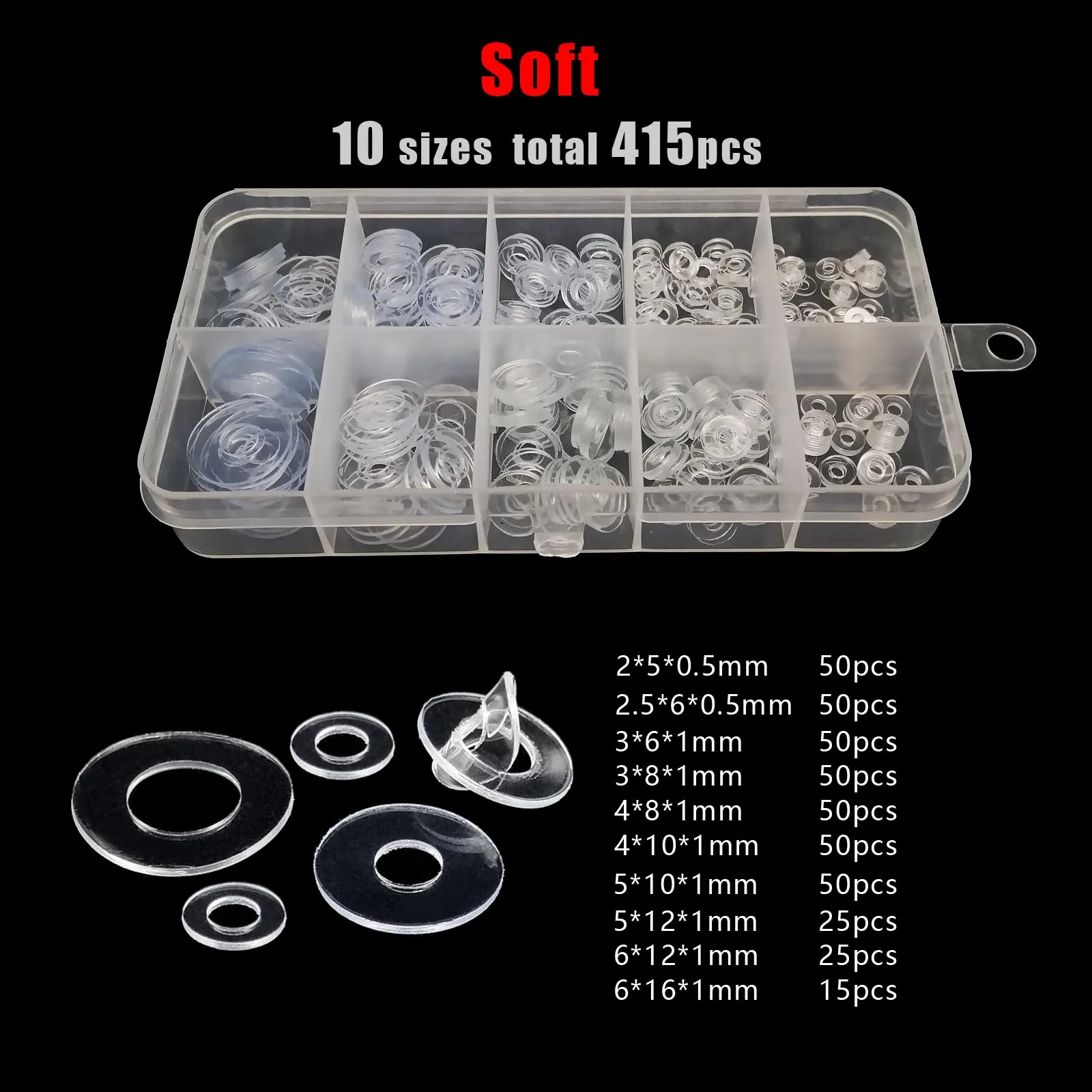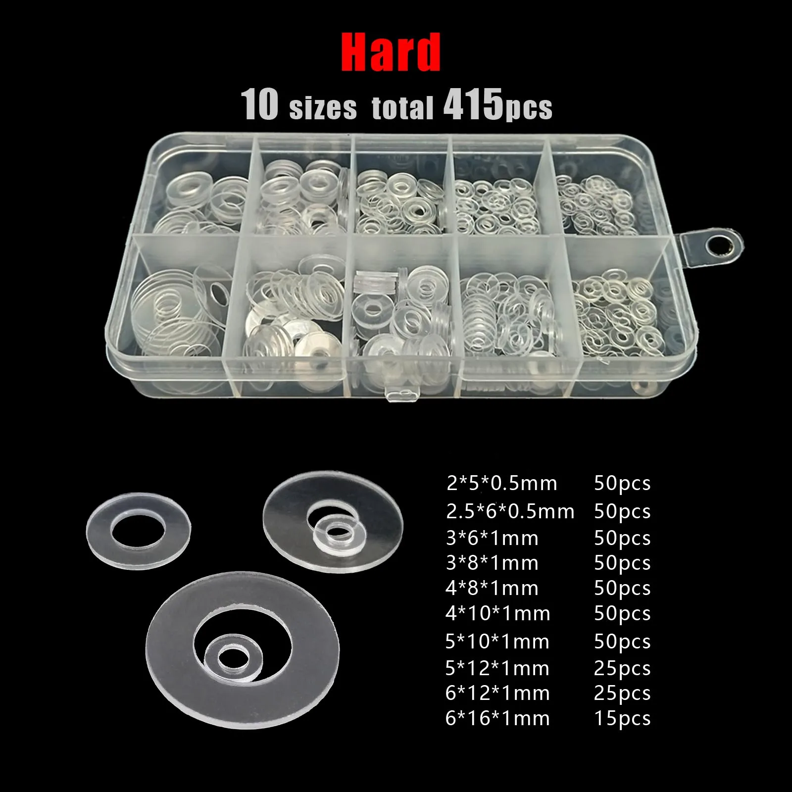 415pcs/box Transparent Clear Flat Washer Plain Spacer Insulation Gasket Ring M2 M2.5 M3 M4 M5 M6 10 Sizes Kit Set Plastic PVC