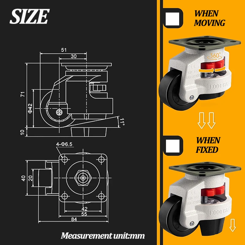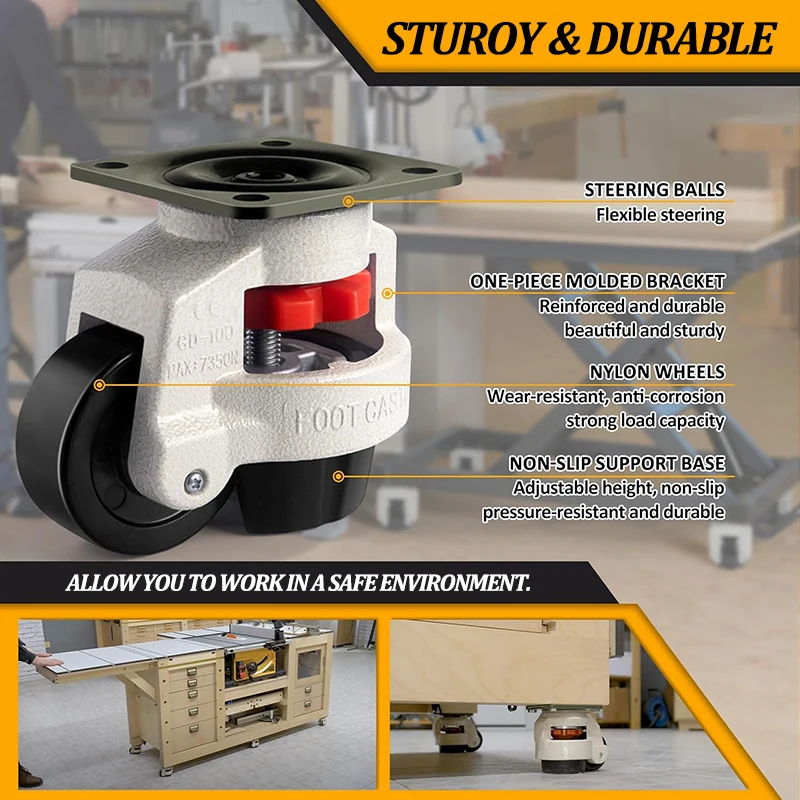 Adjustable Height Heavy Duty Leveling Machine Caster Universal Anti-slip Wheel Machinery Caster for Vending ,Workbench Machine