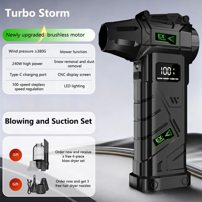 Lenovo New Blower Violent Fan Brushless Motor Turbocharged Duct Powerful Handheld Hair Dryer Dust Removal Snow Blowing/vacuuming