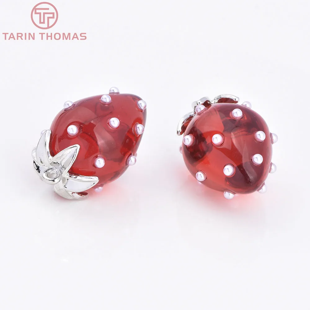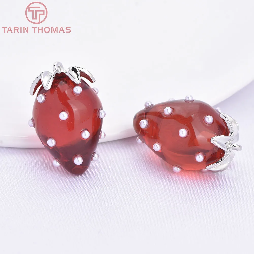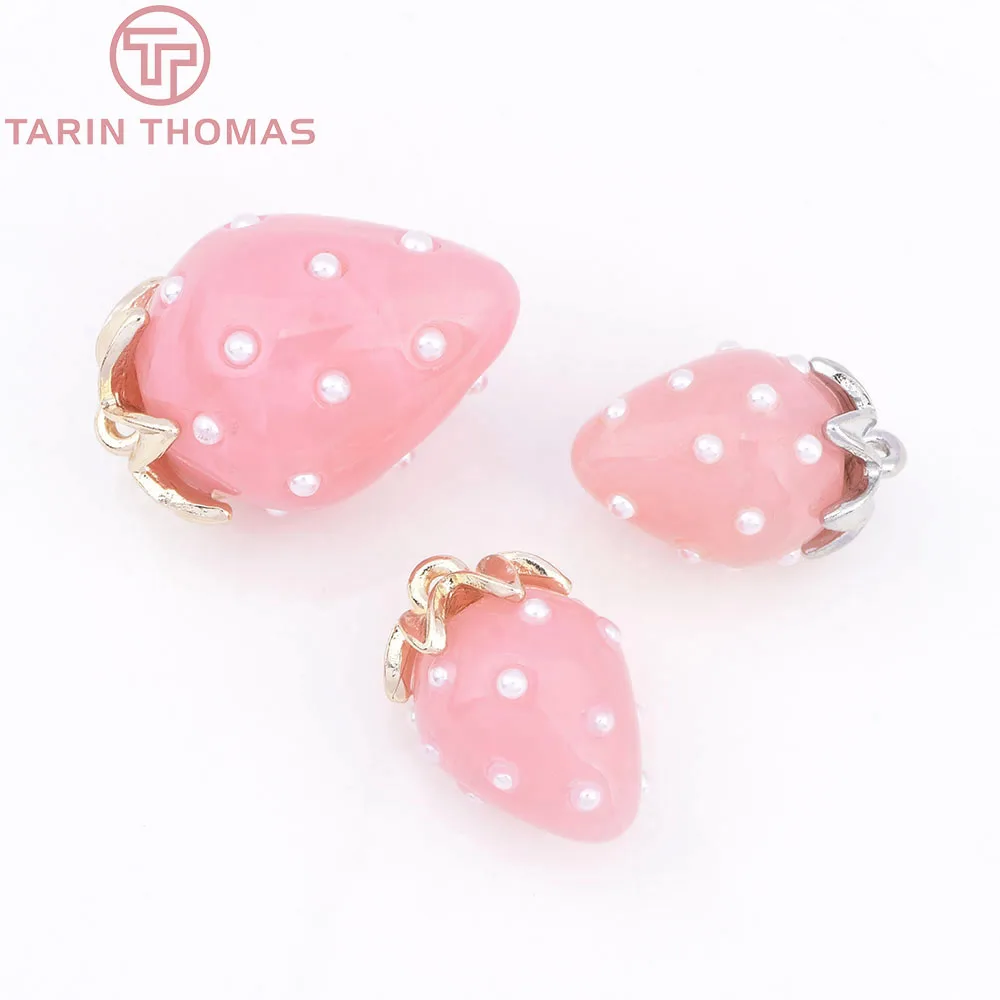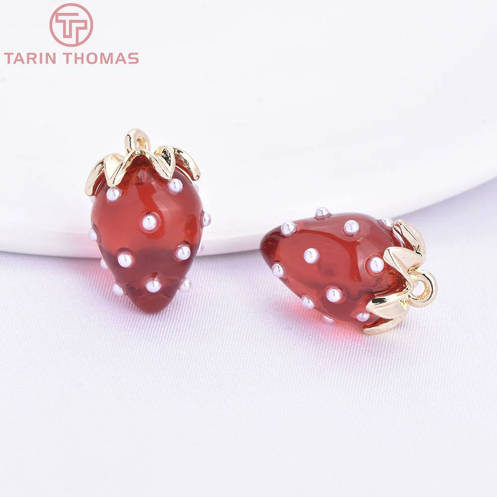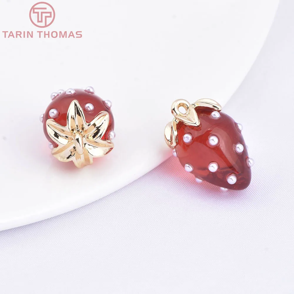(10593) 4PCS 18K Gold Color Brass Pearl embellished hollow strawberry shaped Pendants High Quality DIY Jewelry Making