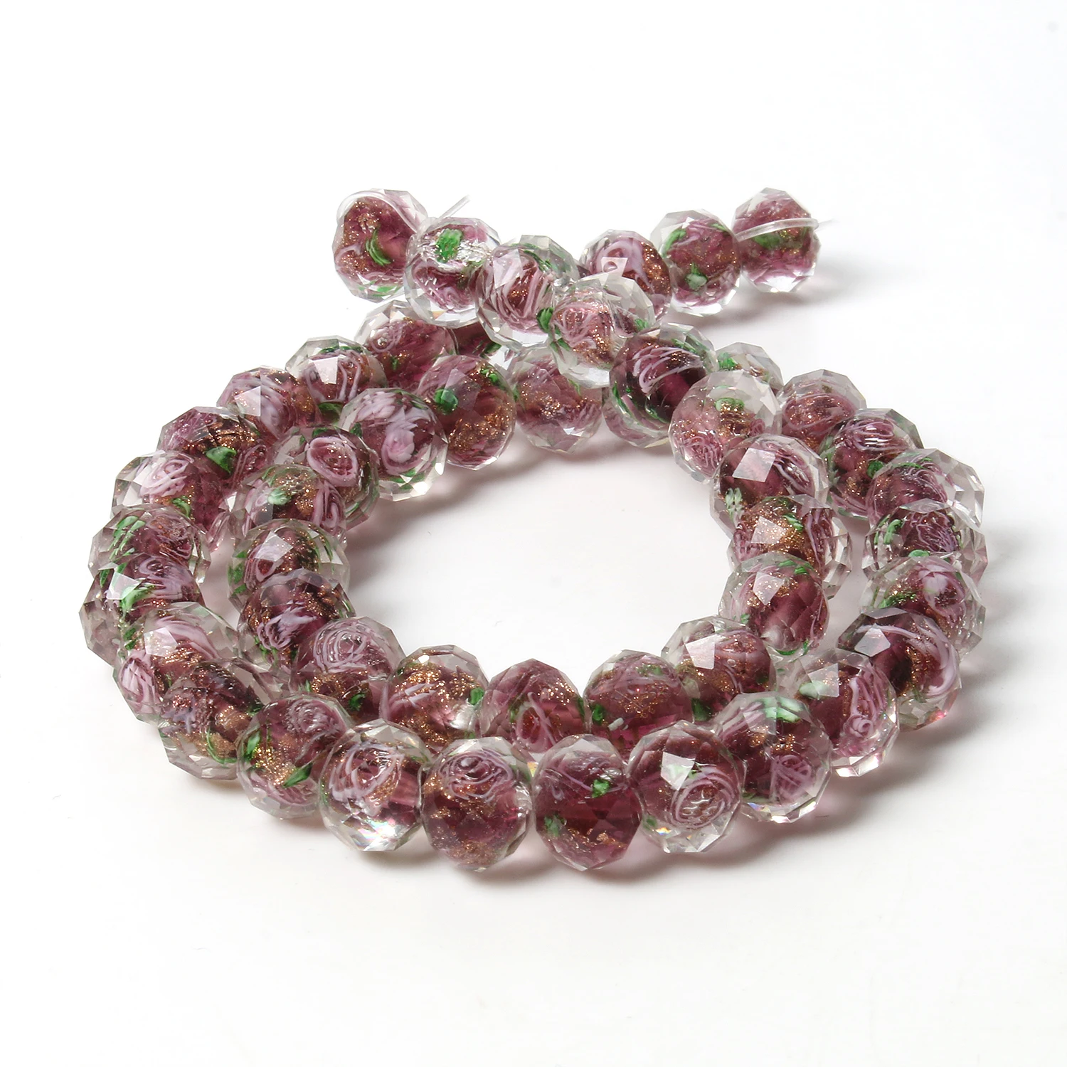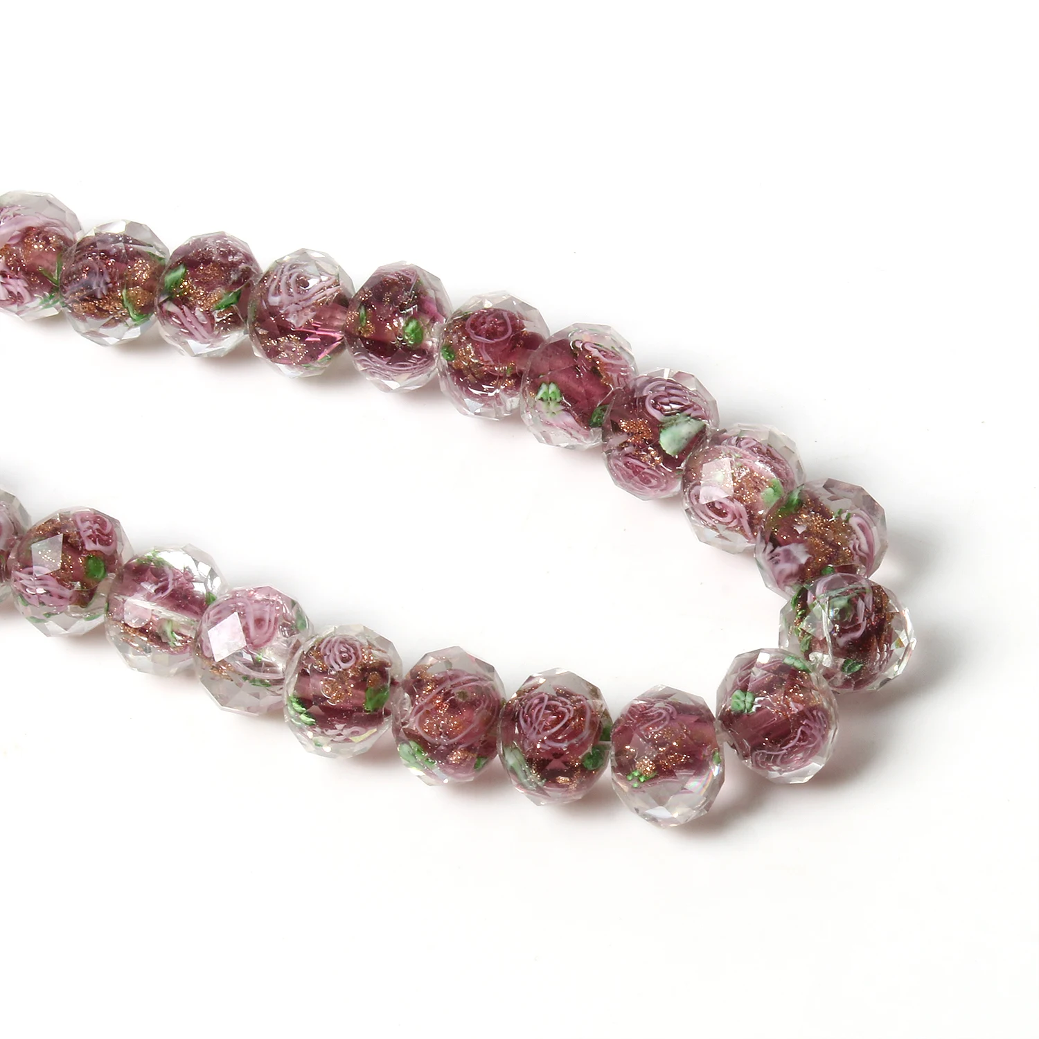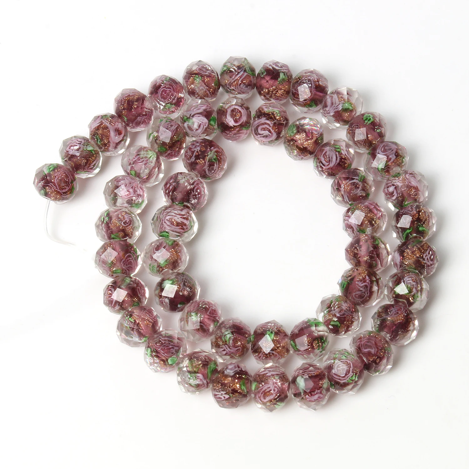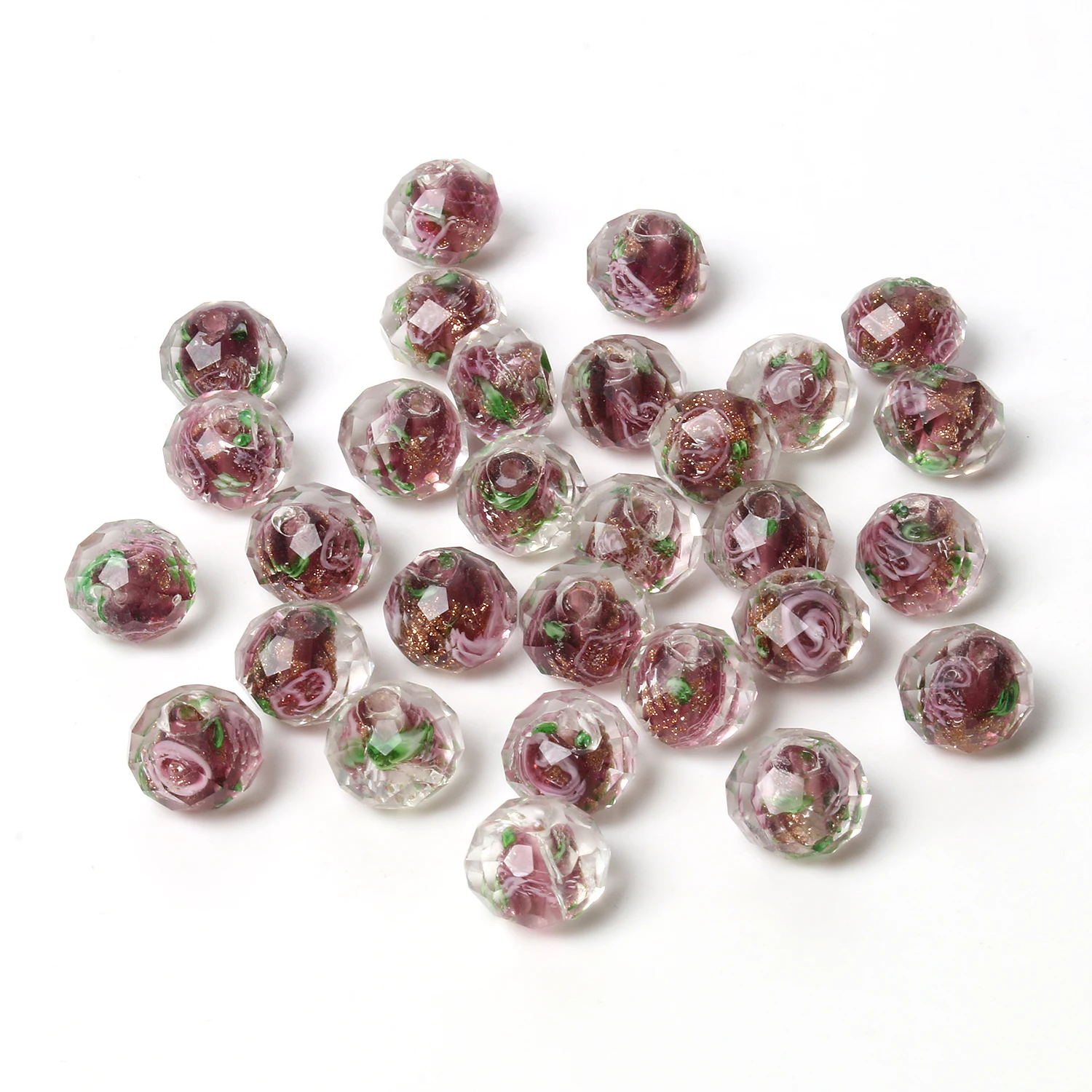 10mm Murano Faceted Transparent Dark Purple Flower Glass Lampwork Spacer Beads for Jewelry Making Women Diy Bracelets Hole 2mm