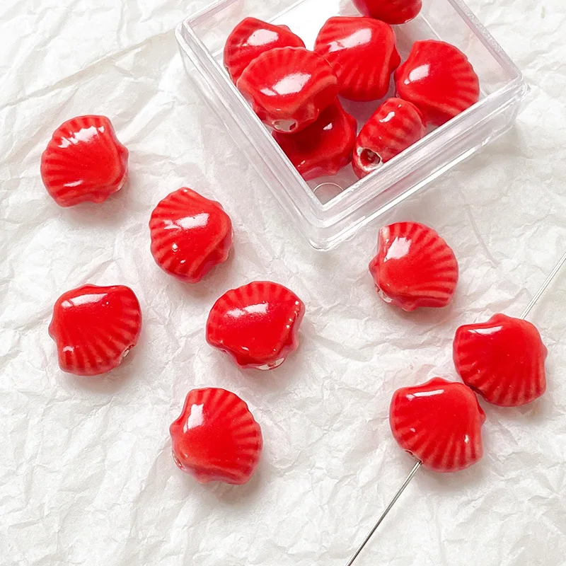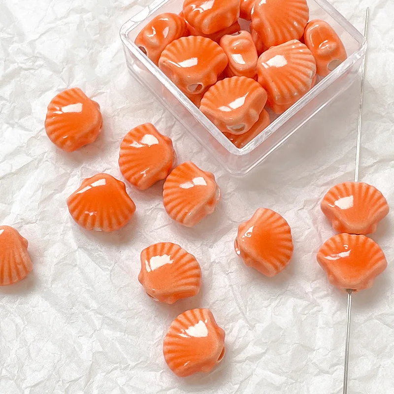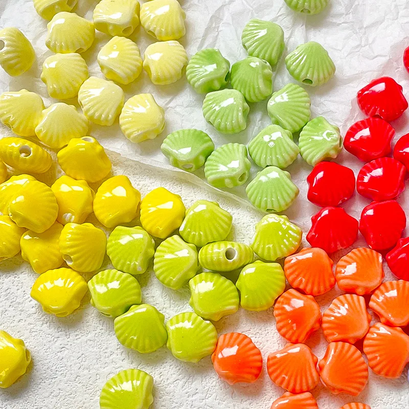 10pcs 10x12mm Shell Shaped Ceramic Beads Multicolor Loose Porcelain Beads DIY Necklace Bracelet Jewelry Making Accessories