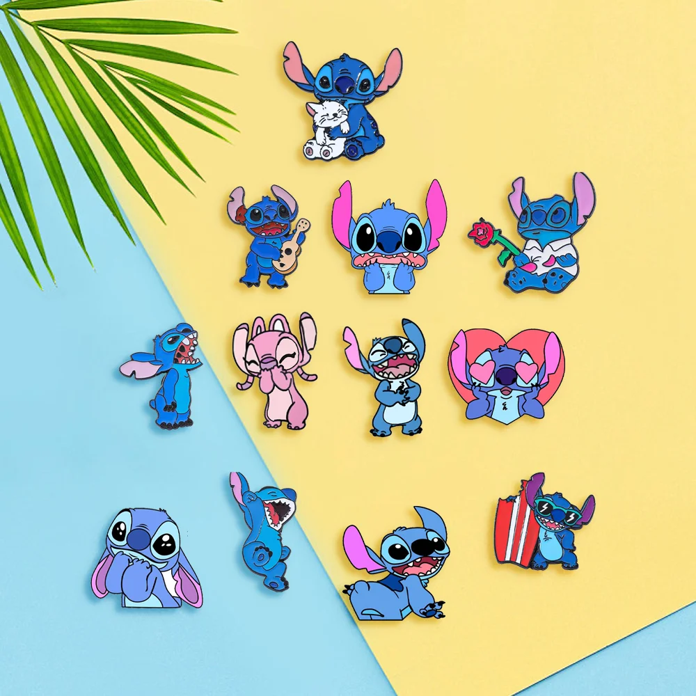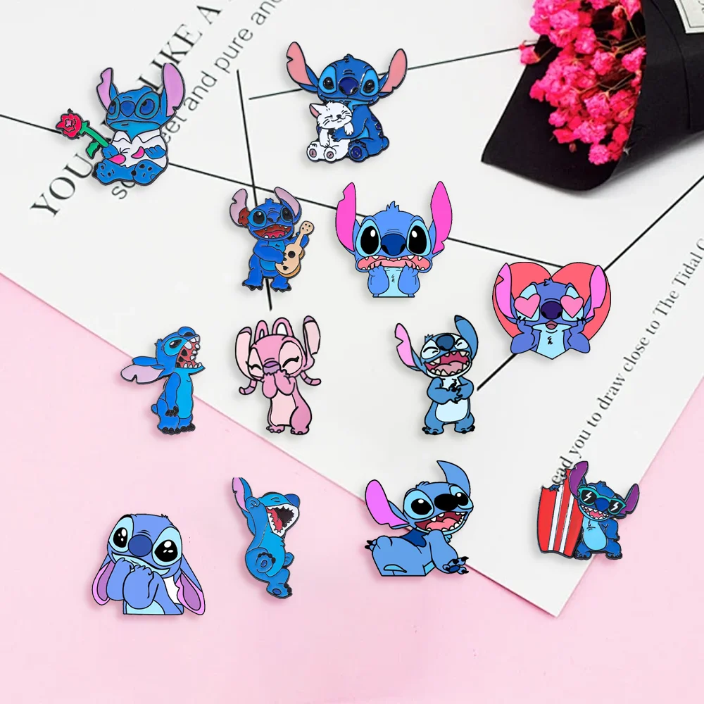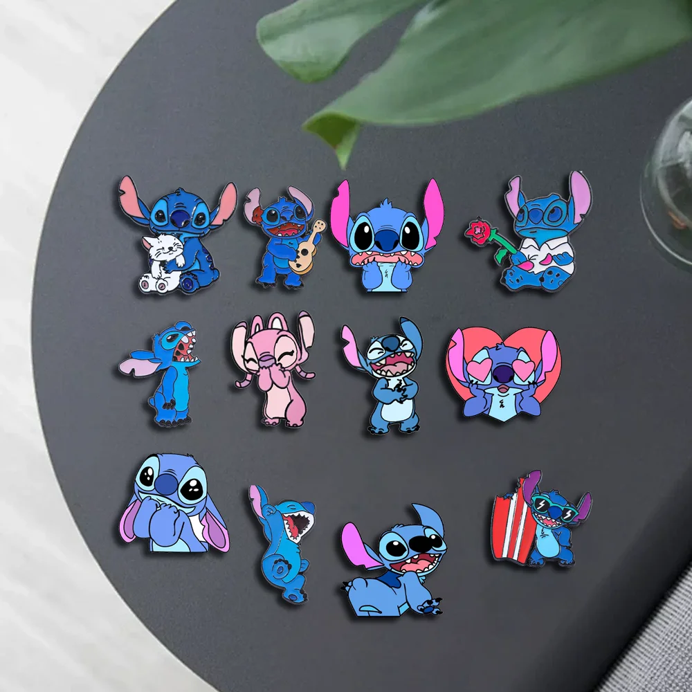 12 Pcs Funny Cartoon Brooch Cute Stitch Creativity Enamel Pin Backpack Clothing Jewelry Metal Badge Accessories Decoration Gift