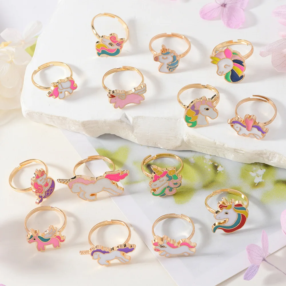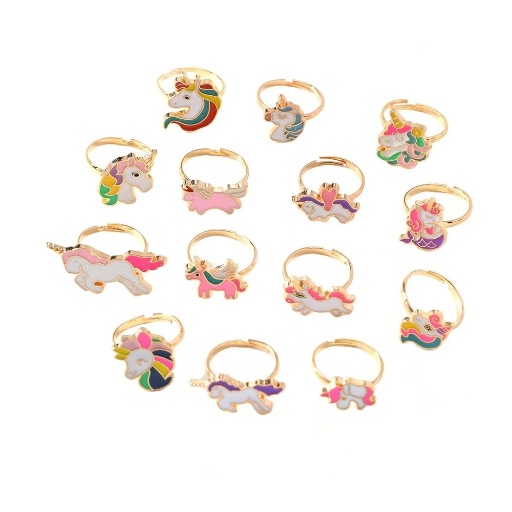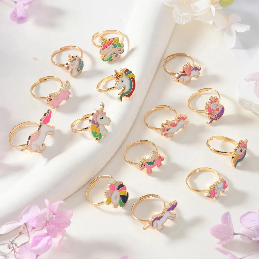 14Pcs Adjustable Rings for Girls Women Cute Cartoon Unicorn Alloy Ring Fashion Beauty Jewelry Christmas New Year Gift for Girl