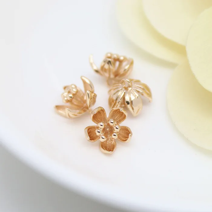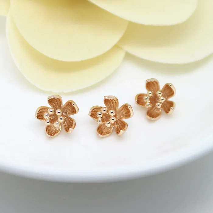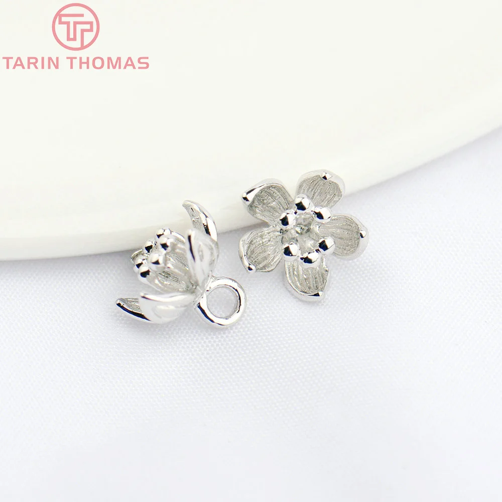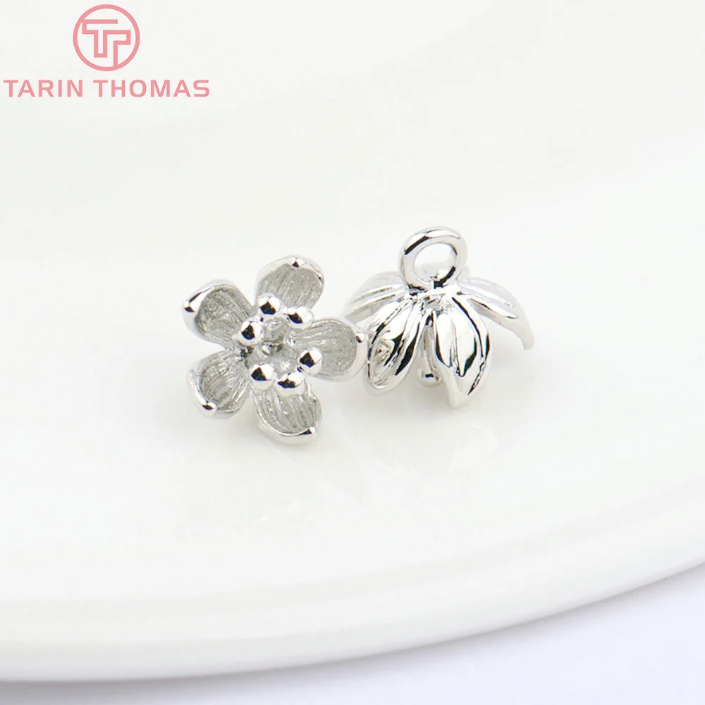 (1564)6PCS 5x9MM 24K Gold Color Plated Brass Plum Flower Charms High Quality Diy Jewelry Accessories