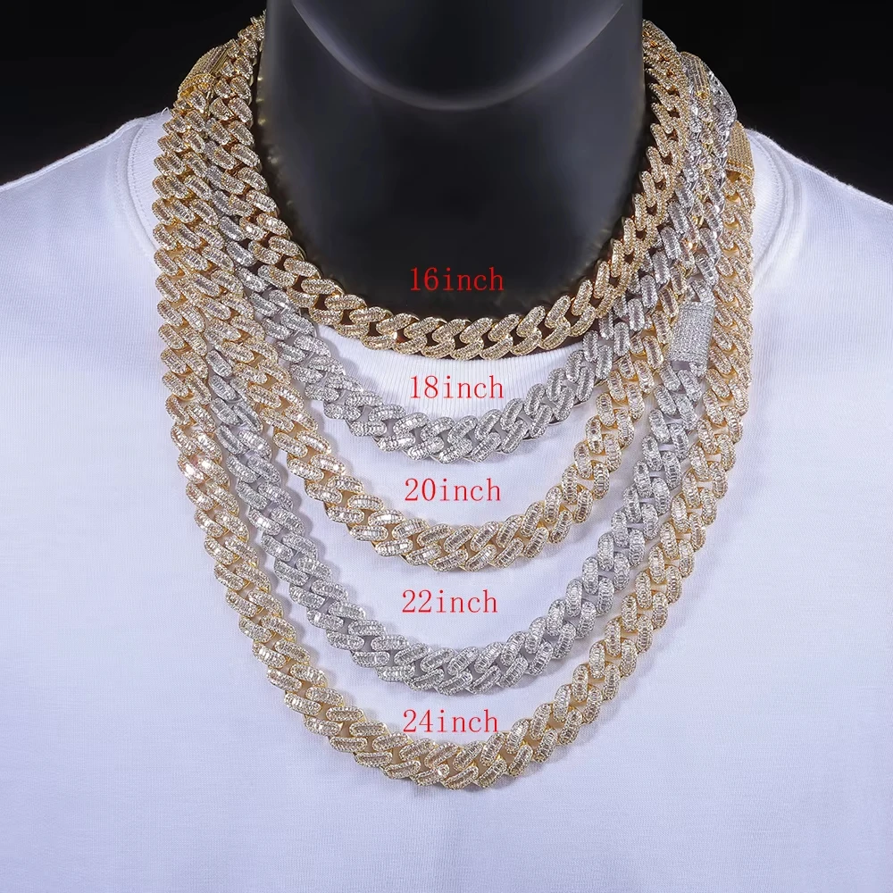 15mm Zircon Cuban Link Chain Iced Out In hand-set Simulated Diamond Stones Bling Miami CZ Necklace Gift for Her/Him