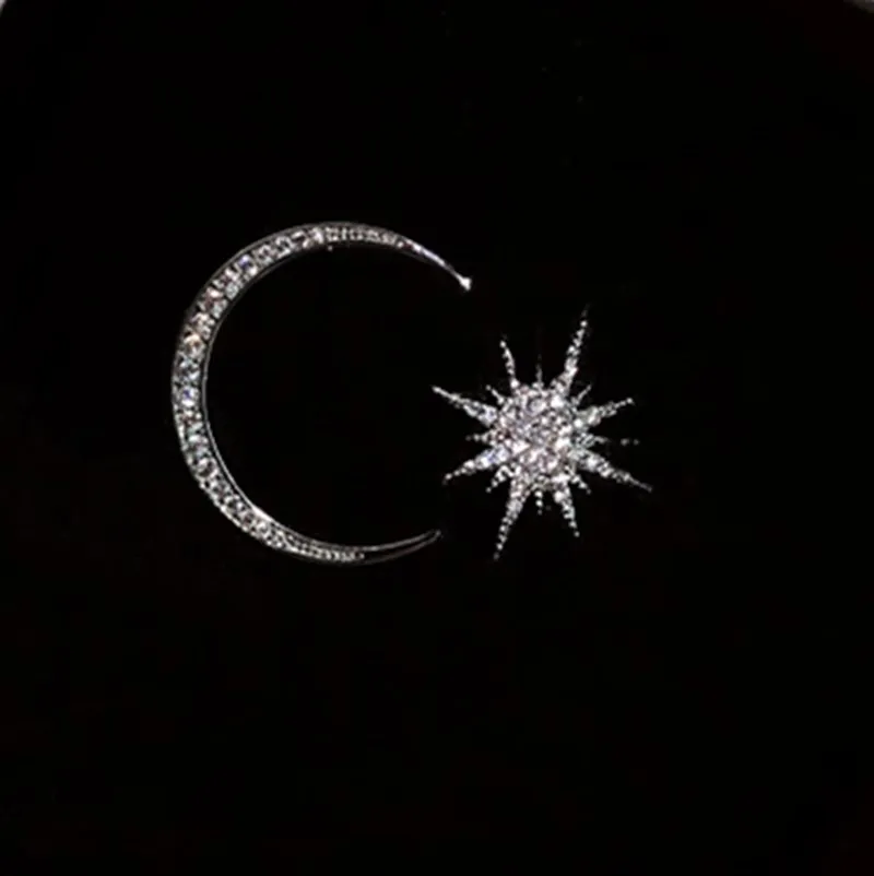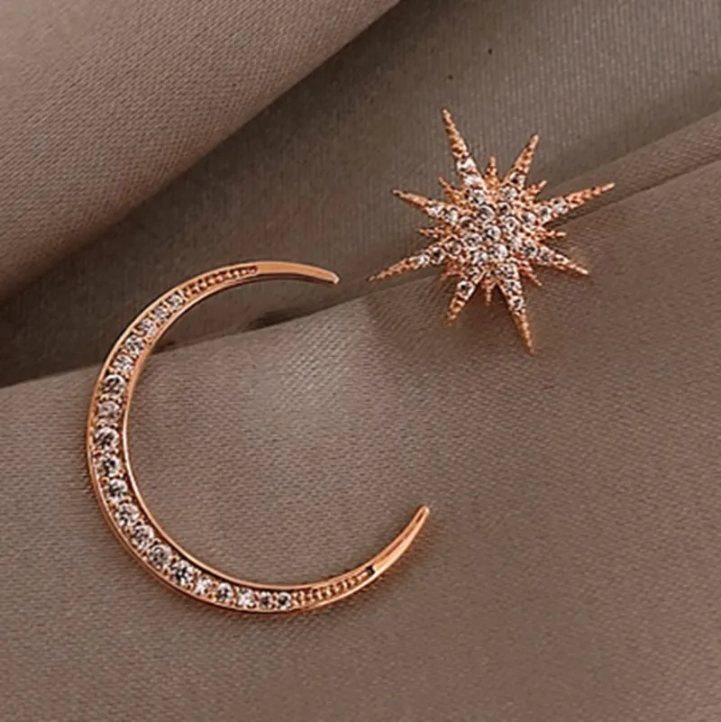 2021New Fashion Star Moon Earrings Korean Asymmetric High Sensation Earrings Prevent Allergy exquisite Earrings Women's Jewelry