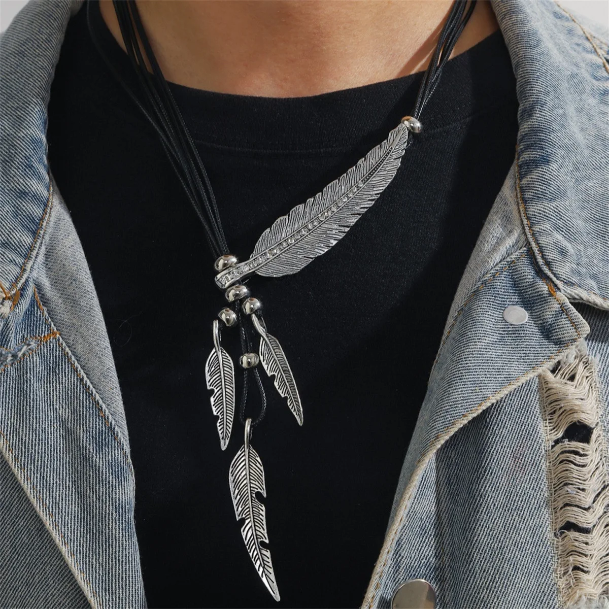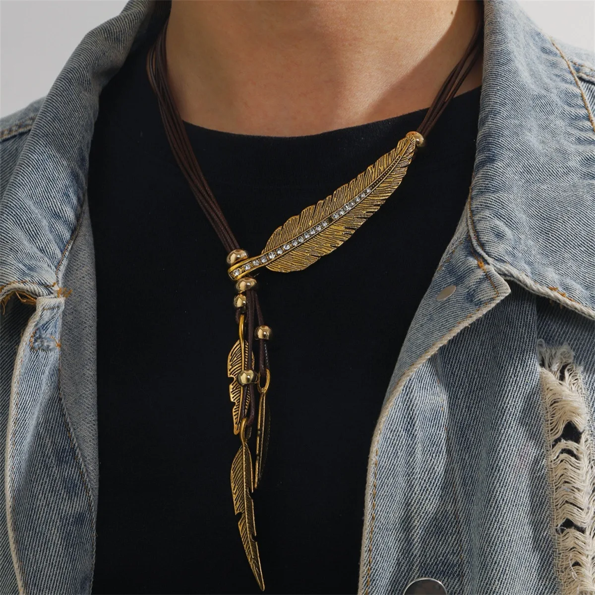 2025 Trend Fine Jewelry Neck Pendants Bohemian Style Rope Chain Leaf Feather Pattern Pendant For Women Men Retro Party Necklaces