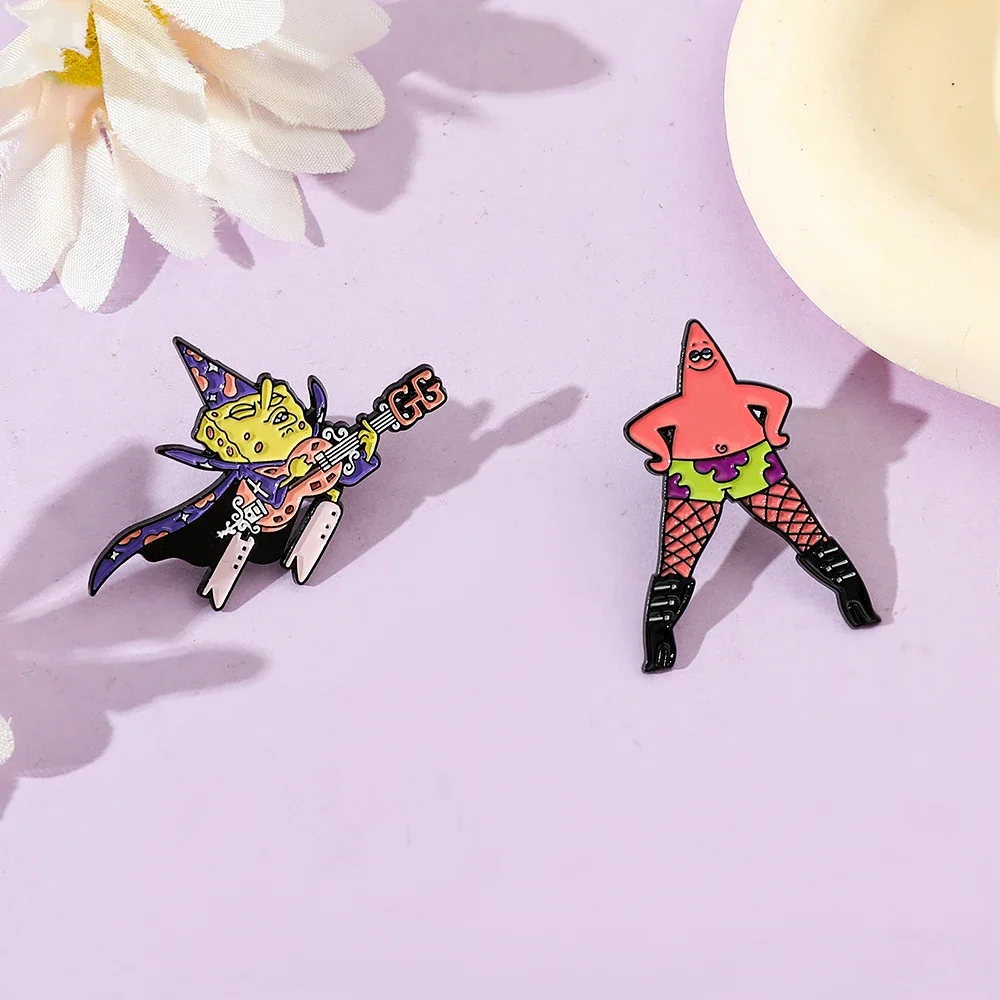 2Pcs Cartoon Brooch Witch SpongeBob SquarePants Patrick Star Enamel Pin Backpack Clothing Jewelry Metal Badge Accessories Gifts