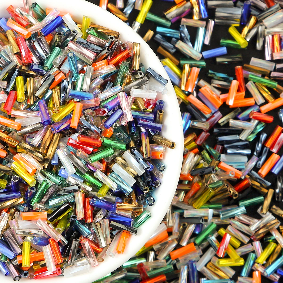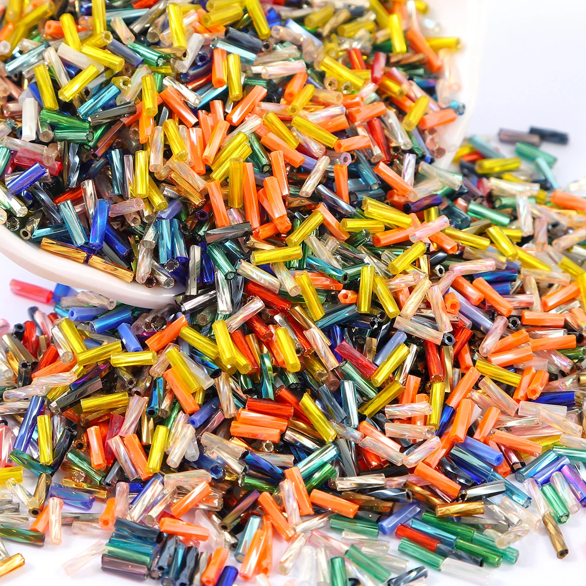 300Pcs 2x6mm Glass Seed Beads Spacer Long Tube Leptospira Beads For Jewelry Making DIY Handmade Bracelet Garment Accessories