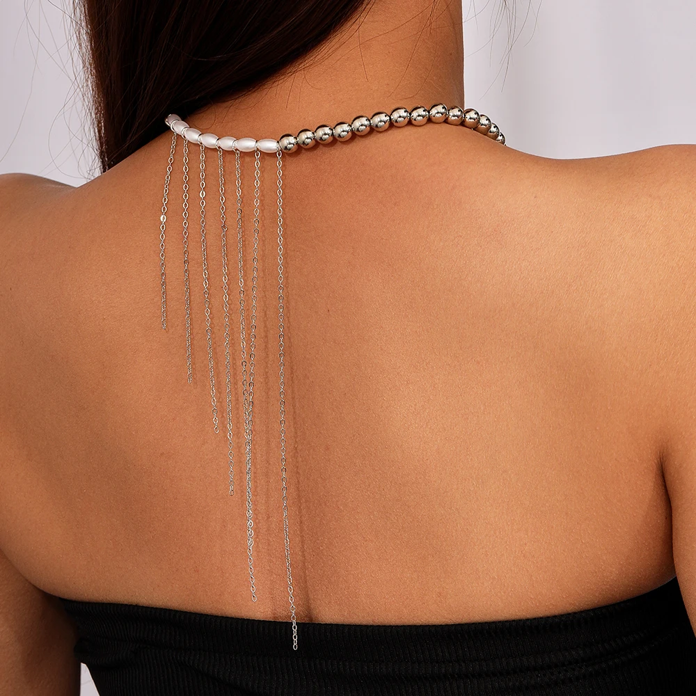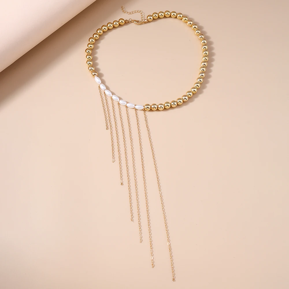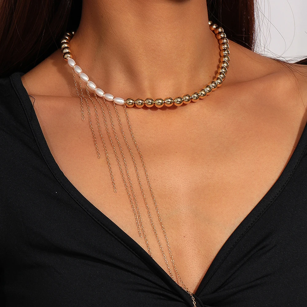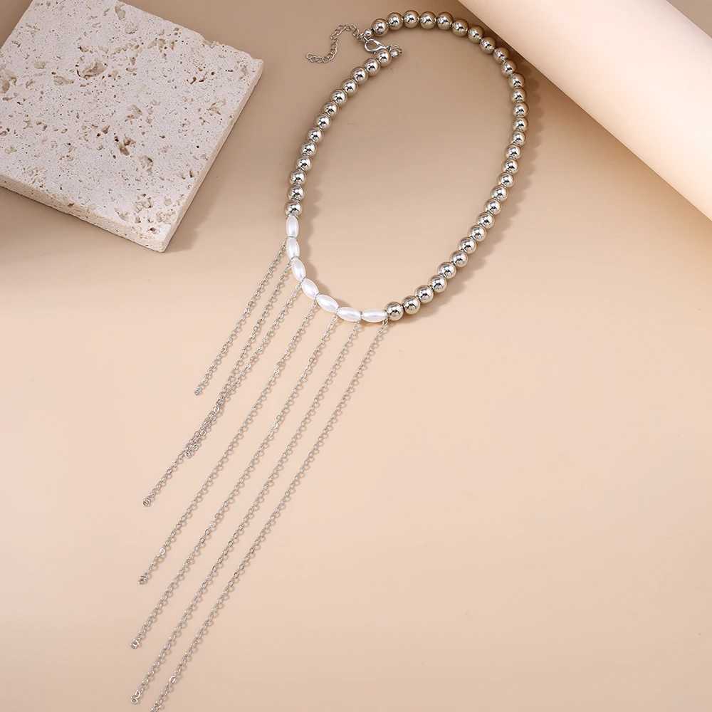 Aihua New Personality Long Tassels Imitation Pearl Beaded Choker Necklace for Women American Trend Wedding Party Jewelry Gifts