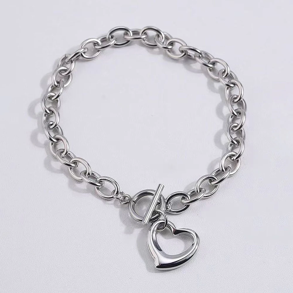 Aomogo Set INS Exquisite Love Fashion Stainless Steel Bracelet Earrings Necklace Pendant Set Women's Daily Goods Party Favors