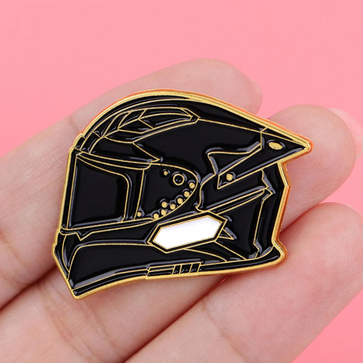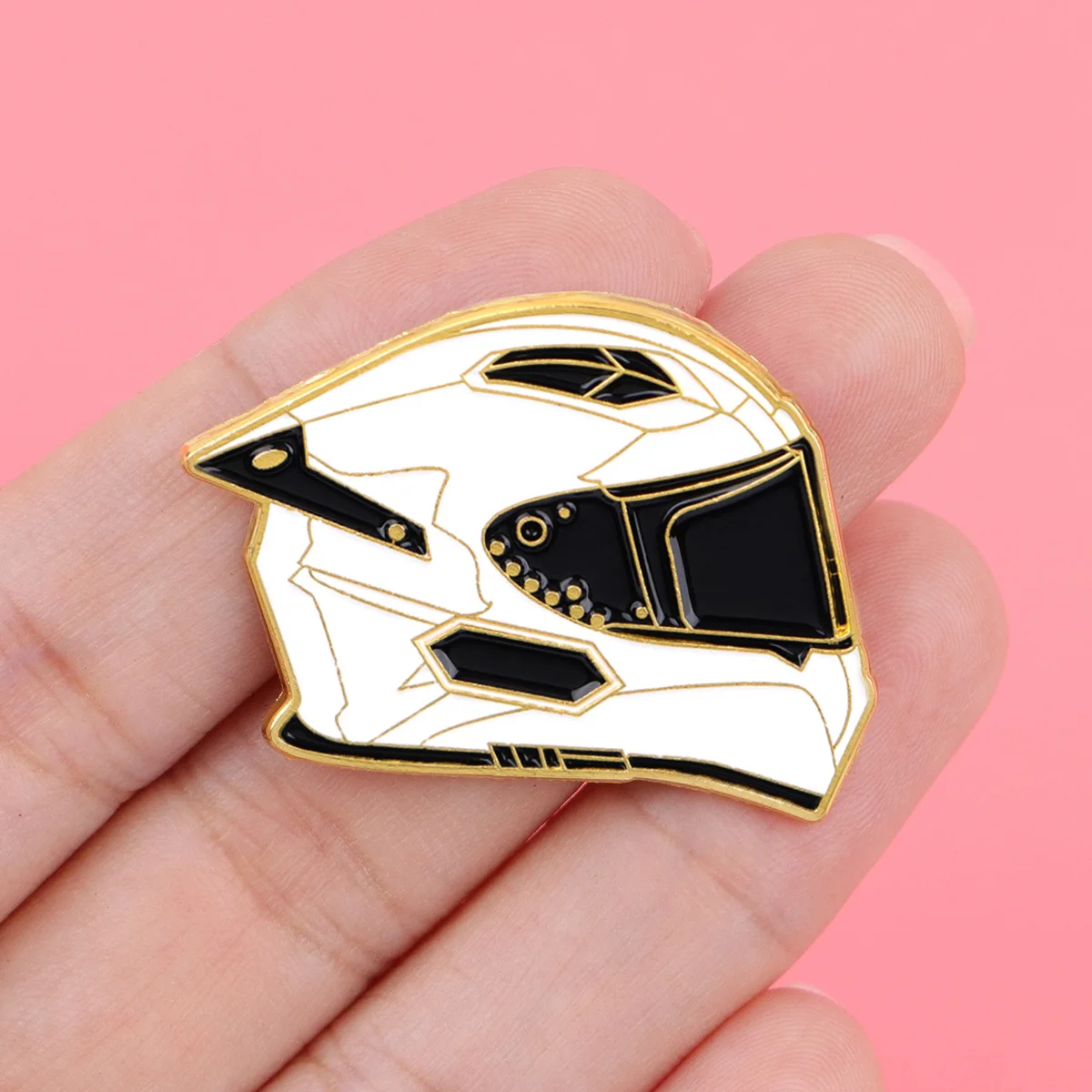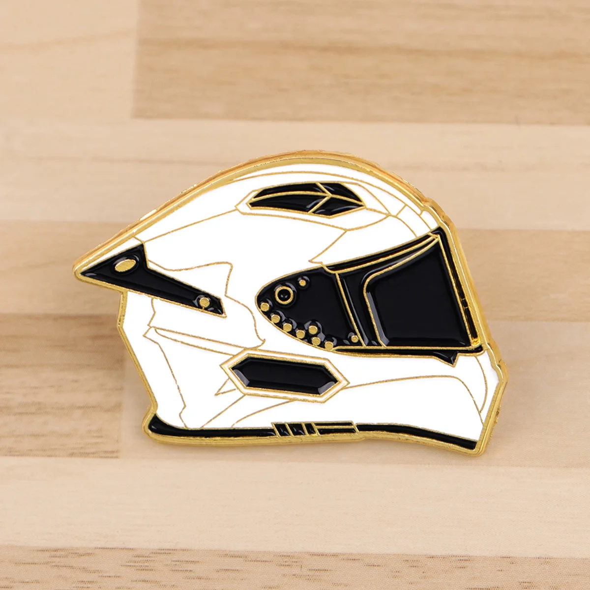 Black White Racing Helmet Enamel Pines Cartoon Brooch Metal Pins Badge on Backpack Clothing Accessories Fashion Jewelry Gifts