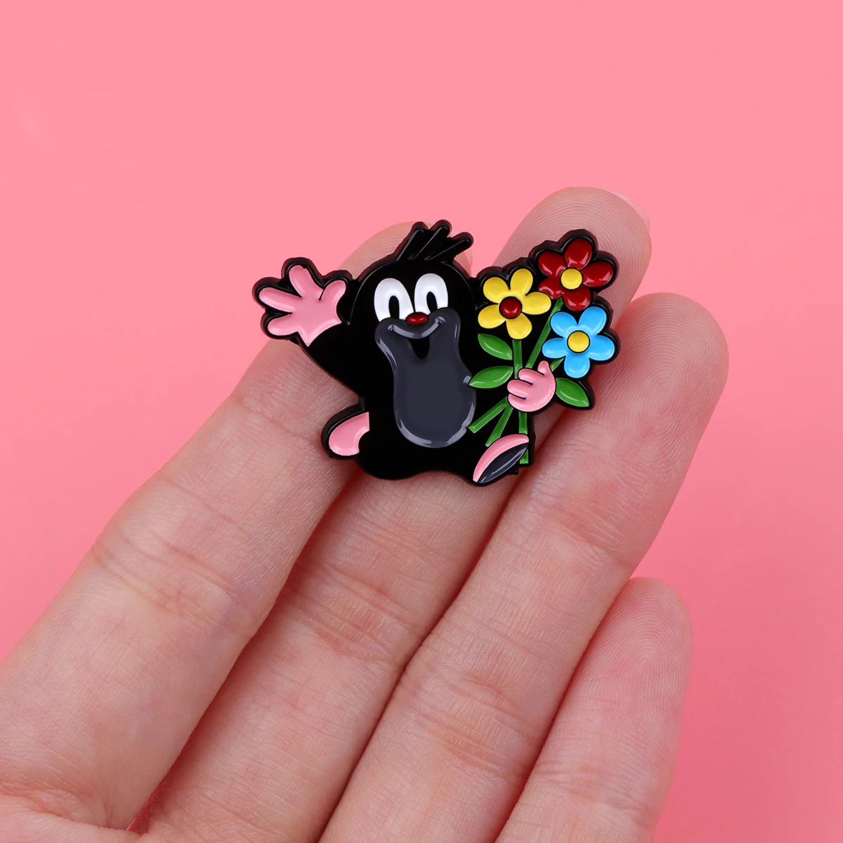 Cute Little Mole Brooches For Women Cartoon Enamel Pin Art Metal Badge Jewelry Clothing Backpack Accessories Friends Gift
