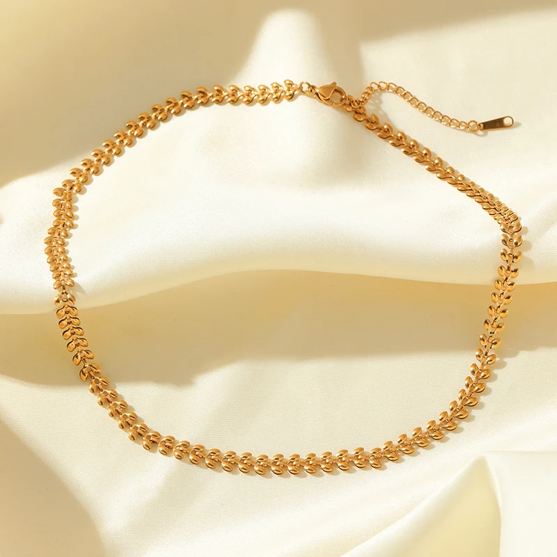 EILIECK 316L Stainless Steel Metal Gold Color Wheat Chain Necklace Bracelets Set For Women Trendy Waterproof Jewelry Lady Gift