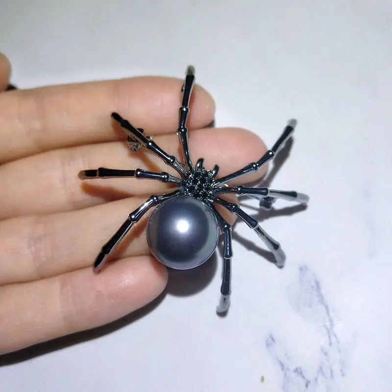 Exaggerated black white spider creative brooch men women party clothes scarf accessories pin brooches gift