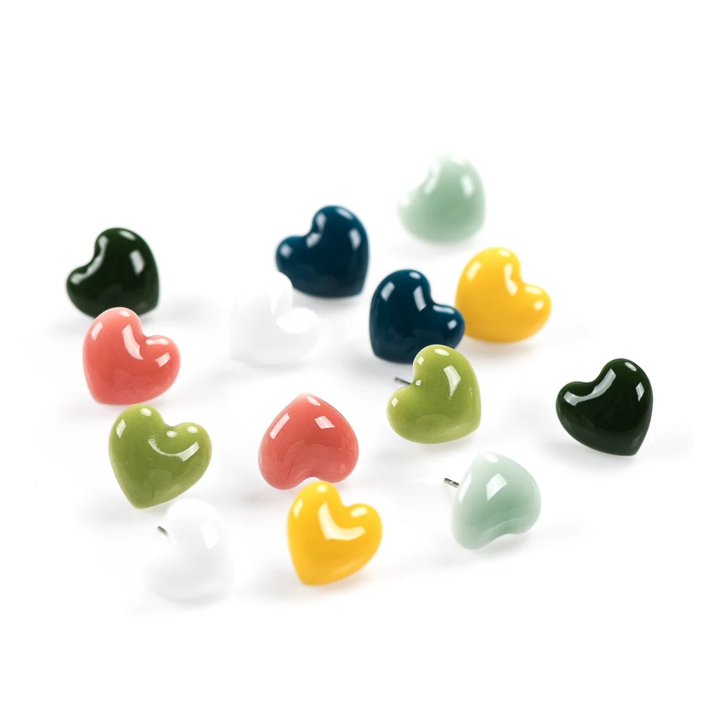 Exquisite ceramic Big love heart shape stud earrings multicolor anti-allergic metal pin fashion earrings #LY117