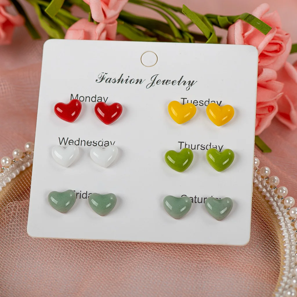 Exquisite Ceramic Love Heart Shape Stud Earrings Multicolor Anti-allergic Metal Pin Fashion #LY101