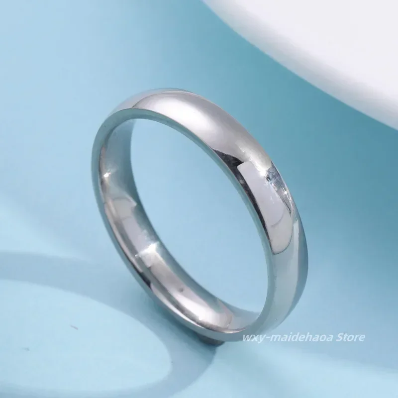 Fashion Simple Smooth Classic 4mm Stainless Steel Ring for Women and Men Classic Couple Rings Wedding Engagement Jewelry