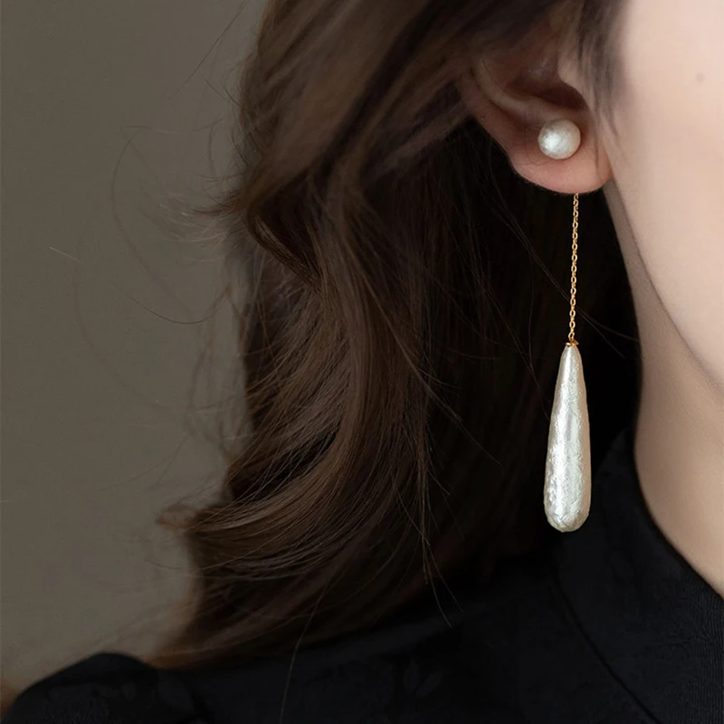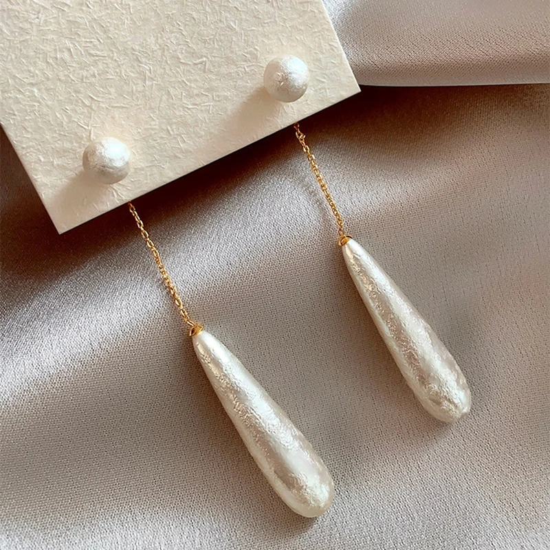 French Elegant Water Drop Imitation pearl Long Earrings Fashionable Texture Foam 2026 New Design Jewelry Accessory For Womens