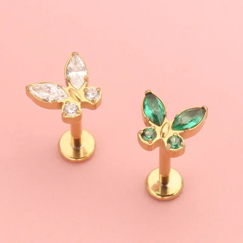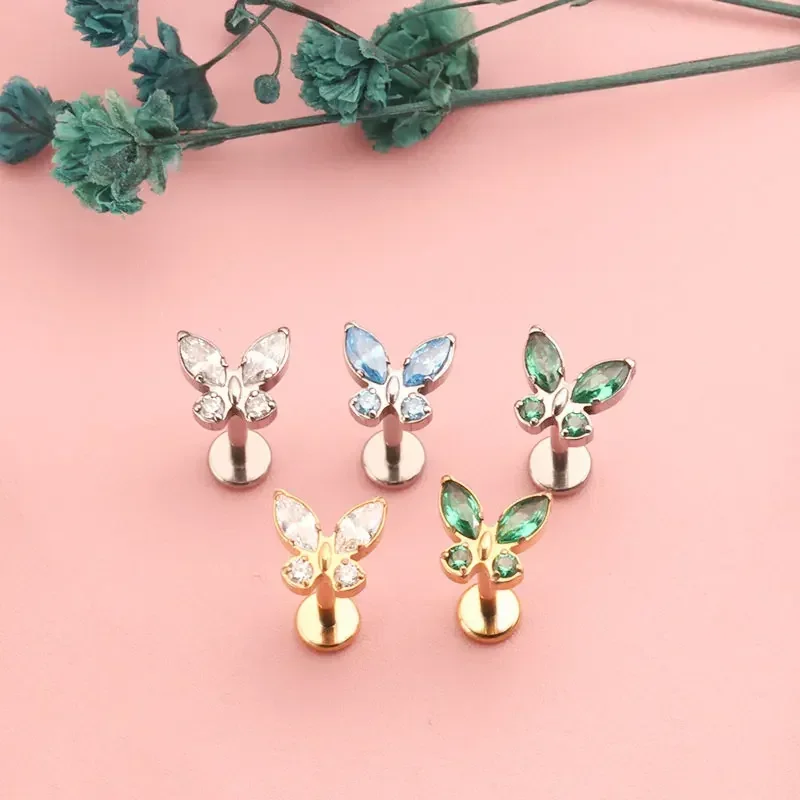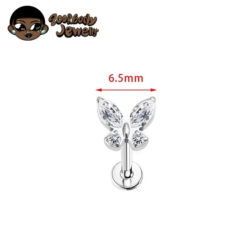 G23 Titanium 16G Labret Piercing Lip Stud Tragus Earring Ear Stud Zircon Butterfly Cartilage Helix Medusa Monroe Body Jewelry