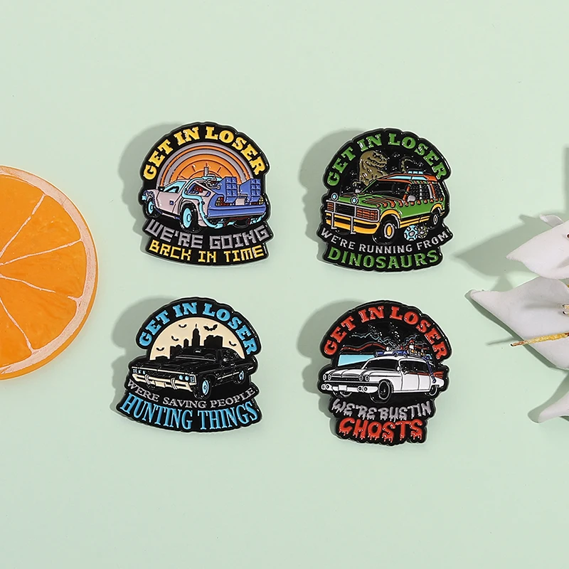 Get In Loser We're Bustin Ghost Enamel Pin We're Going Back In Time Sci-Fi Film Brooches Lapel Badge Jewelry Gift For Friends