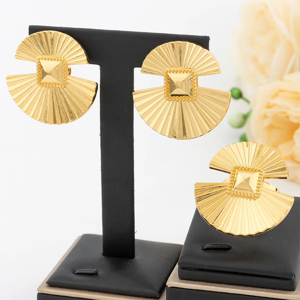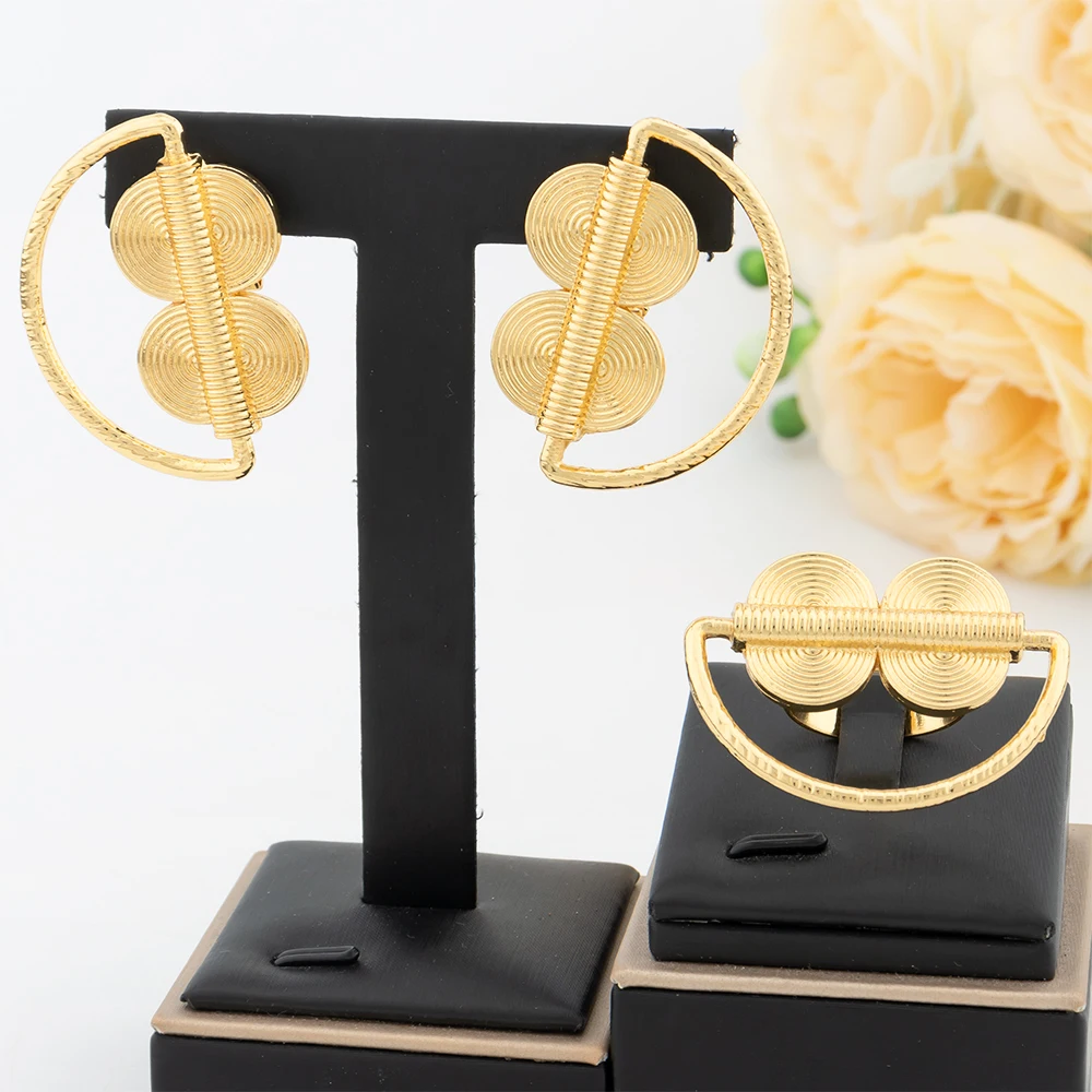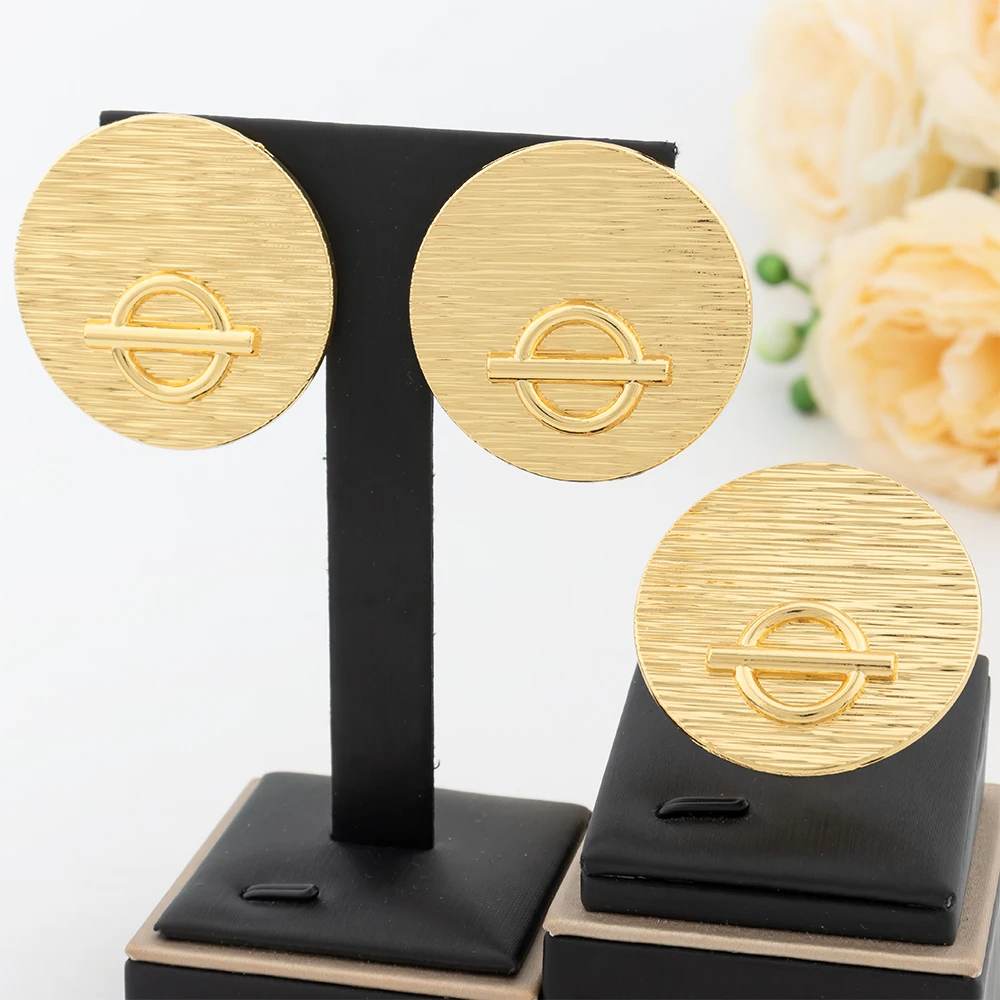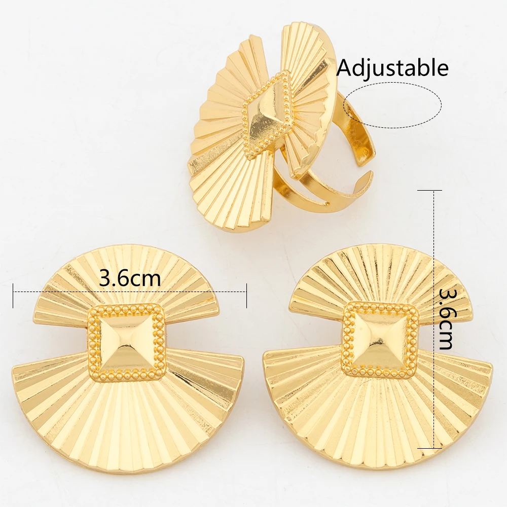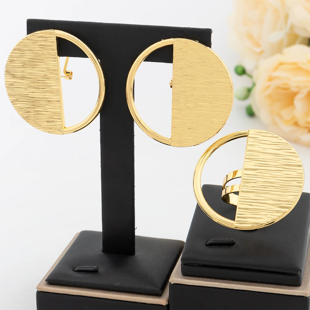 Gold Color Jewelry Set For Women Dubai Round Earrings Adjustable Ring Nigeria Bridal Jewelry Accessories Wedding Bracelet Party