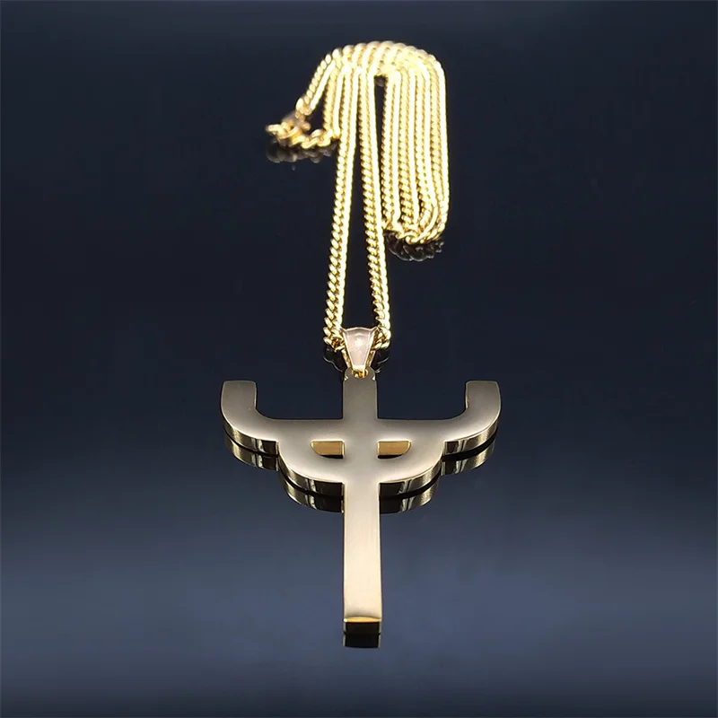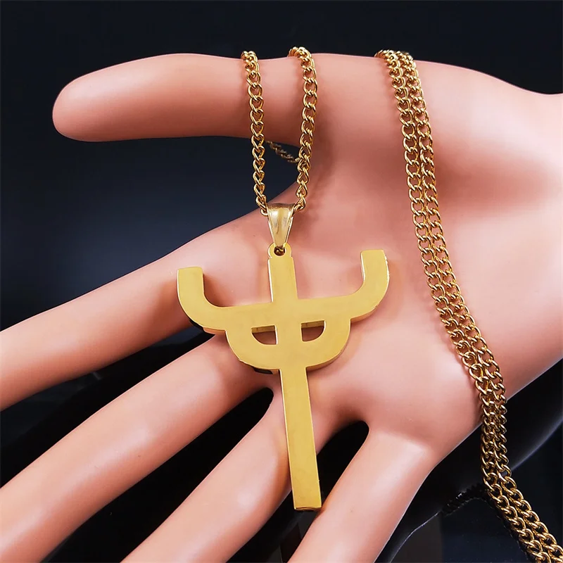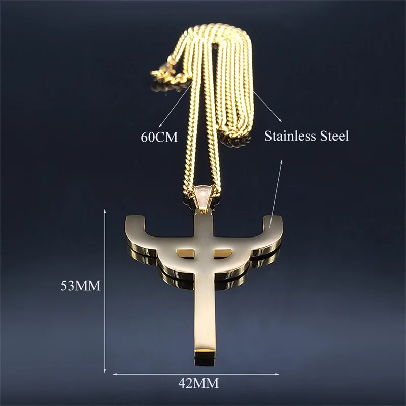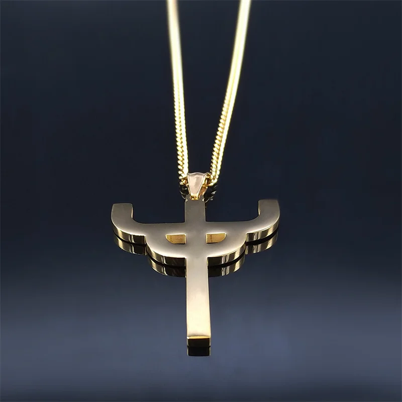 Gothic Judas Priest Symbol Stainless Steel Necklace Women/Men Gold Color Saint Pendant Necklaces Jewelry gargantilla N6254S06