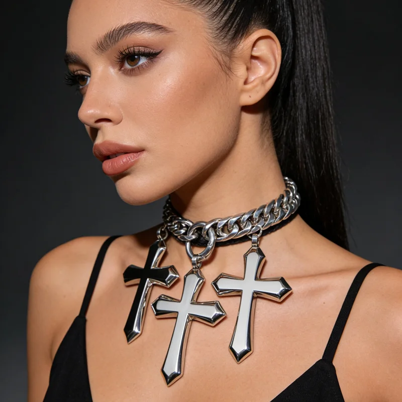 Unisex gender, punk style cross shape/pattern, suitable for street accessories and party occasions.