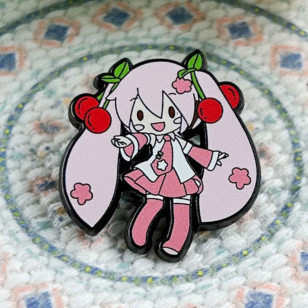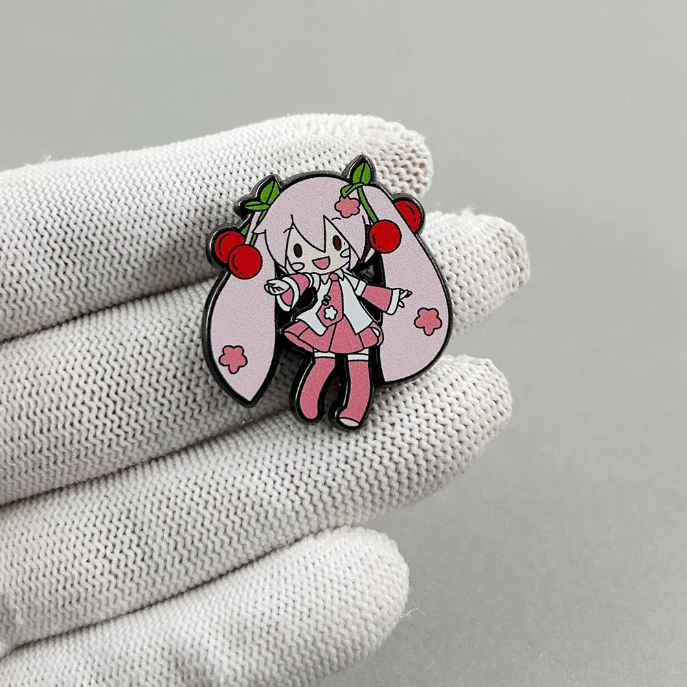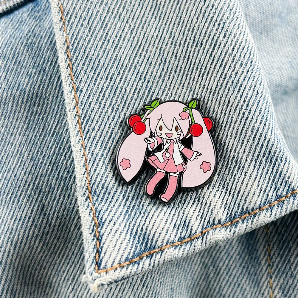 Kawaii Sakura Virtual Singer Enamel Pin Pink Thighhighs Twintail Girl Badge Cute Idol Brooch Fans Otaku Gift Accessories