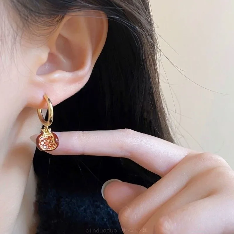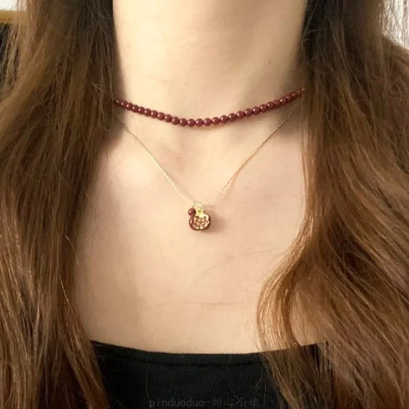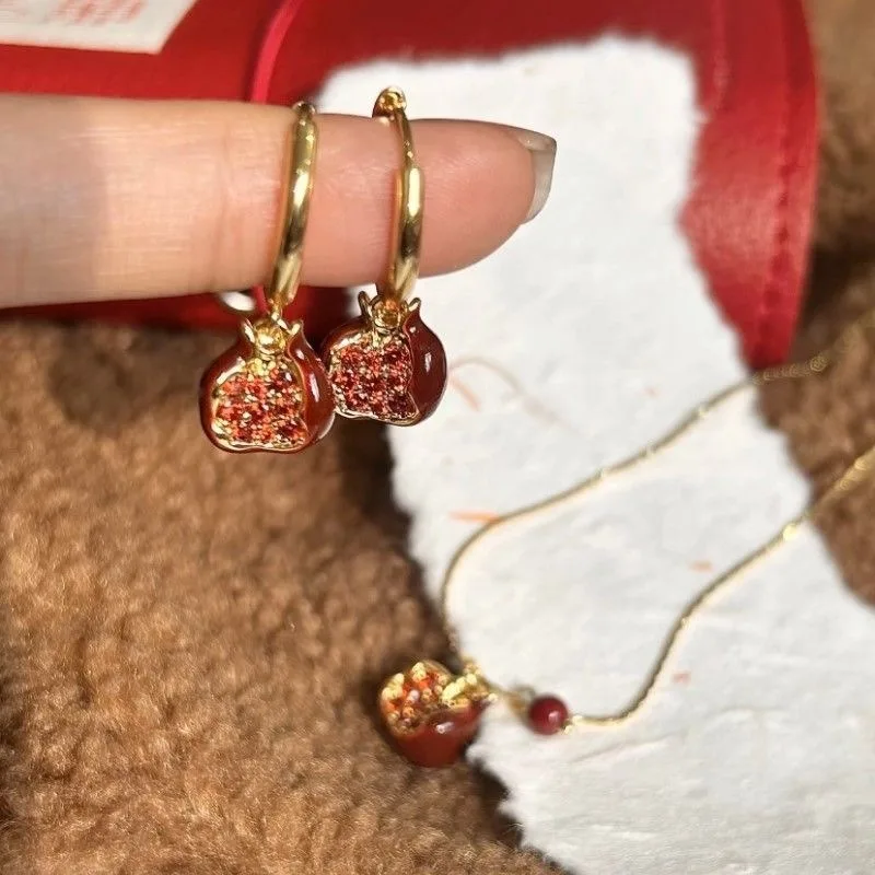Lucky Red Pomegranate Pendant Necklaces for Women Sweet Cute Fruit Clavicle Chain Charm Valentine's Day Jewelry Gift