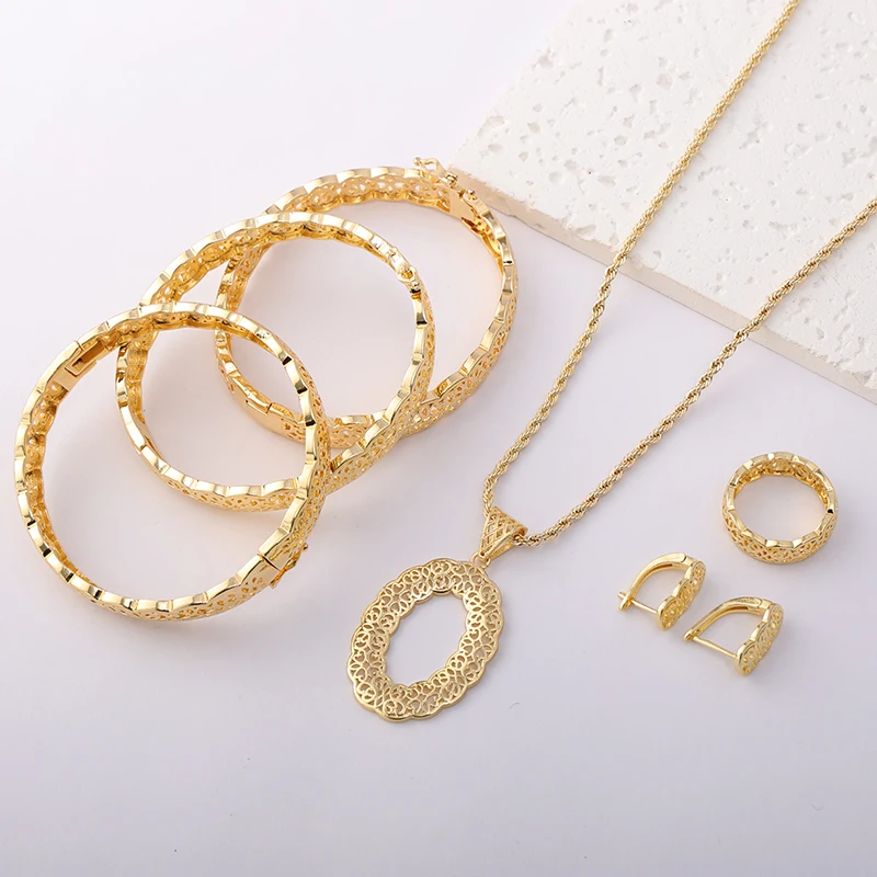 LUIZADA Morocco Trend 18k Gold Color Jewelry Set for Party Design Earrings and Pendant Necklace Bracelet Ring Set for Engagement