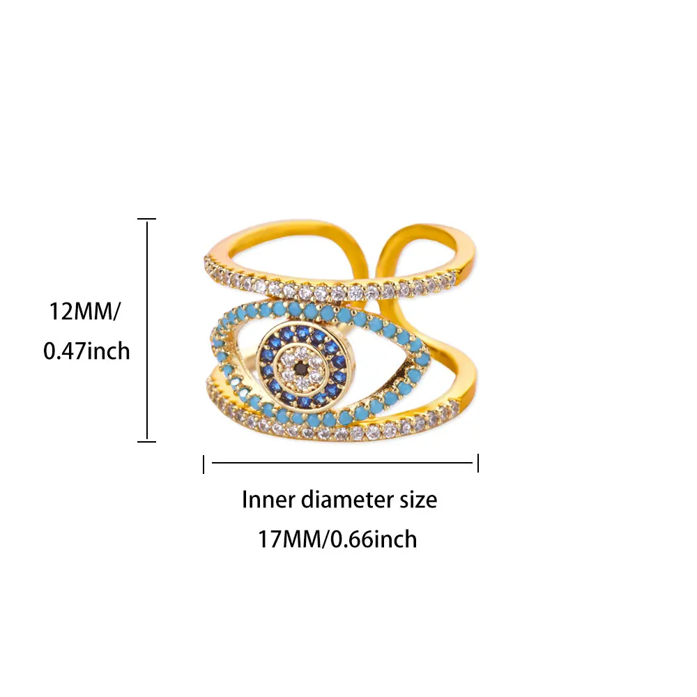 Luxury Evil Eye Rings for Women Open Hollow Stainless Steel Ring Gold Color Lucky Cubic Zirconia Jewelry Femme anillos Freeship