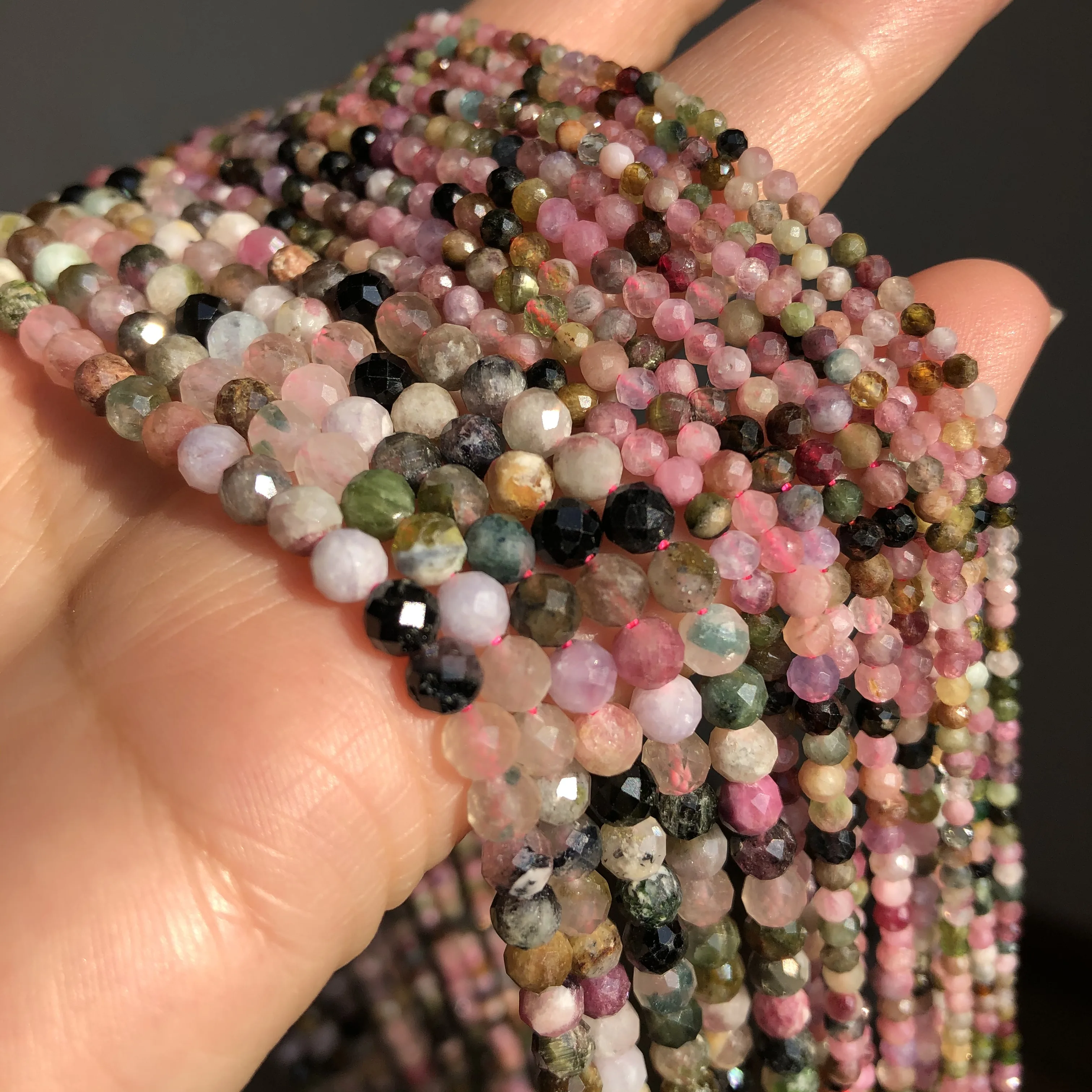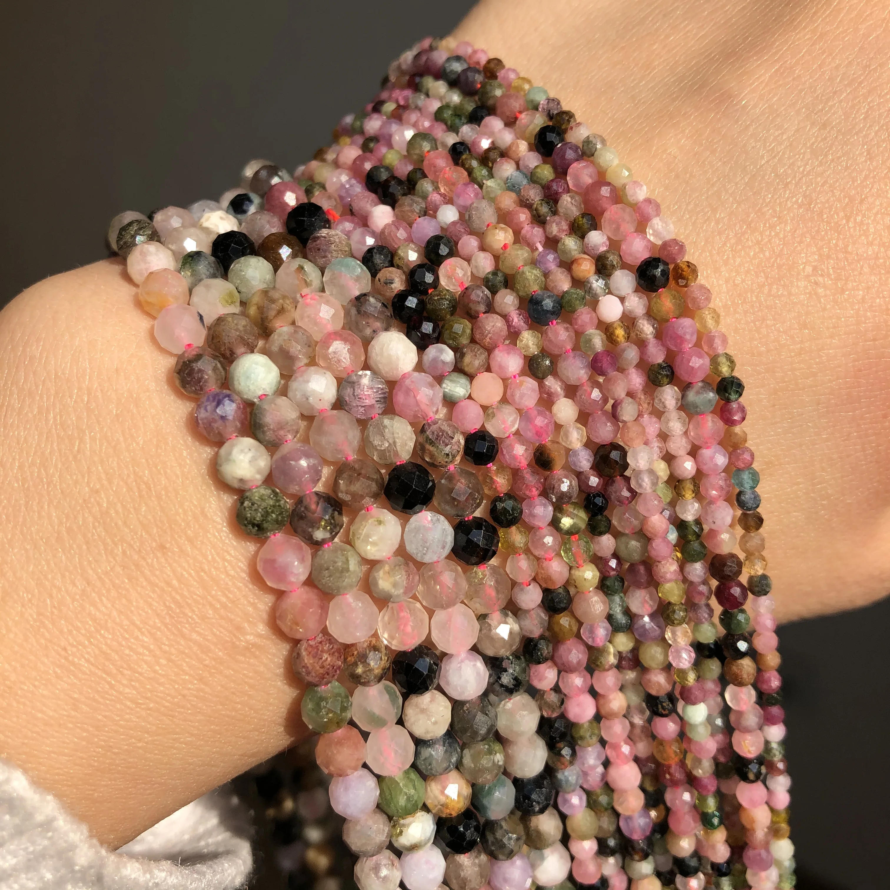 Natural Faceted Colorful Tourmaline Stone Beads Round Loose Spacer Bead for Jewelry Making DIY Bracelet Accessories 15'' 2 3 4mm