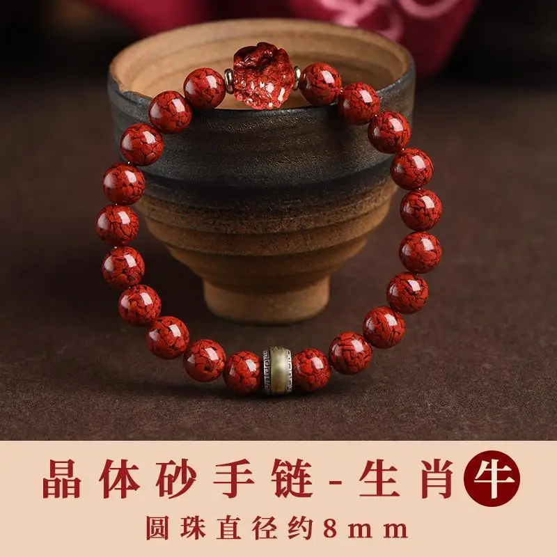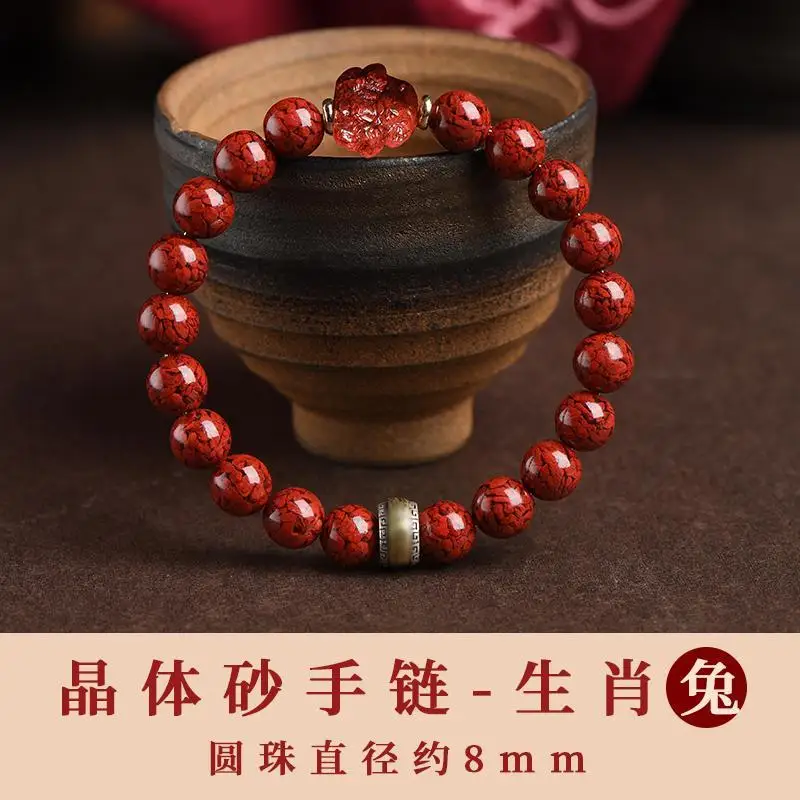 Natural Raw Ore Cinnabar Bracelet Crystal Sand Zodiac Dragon Year of Birth Charm Lucky Beads Gifts for Men and Women